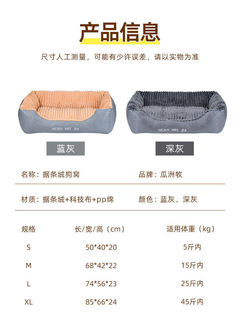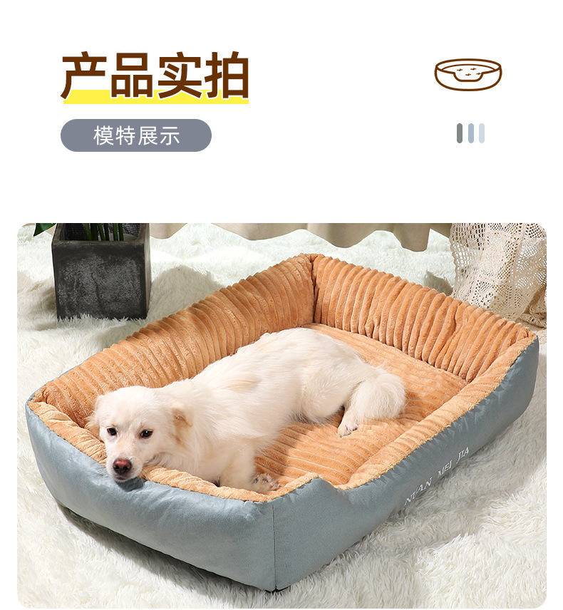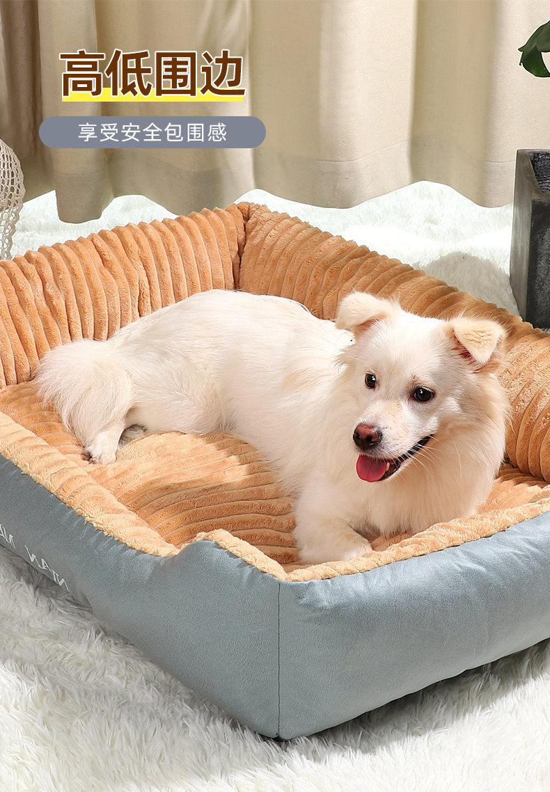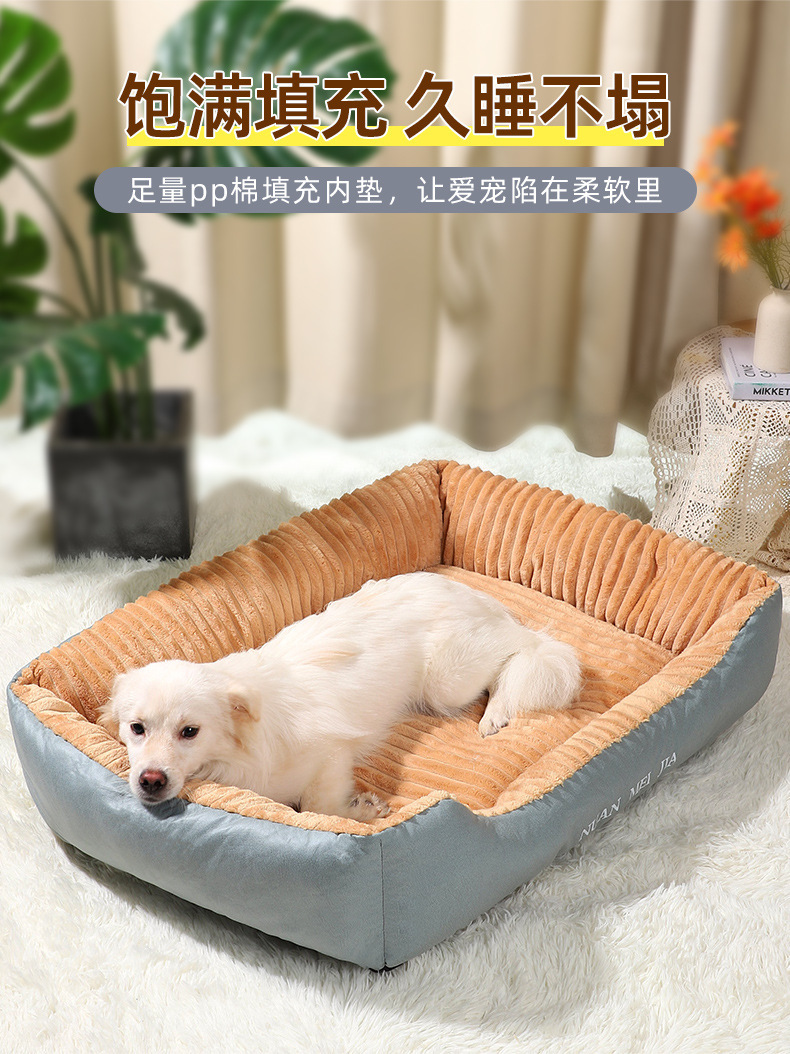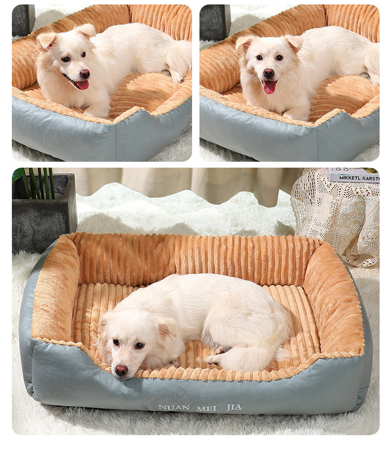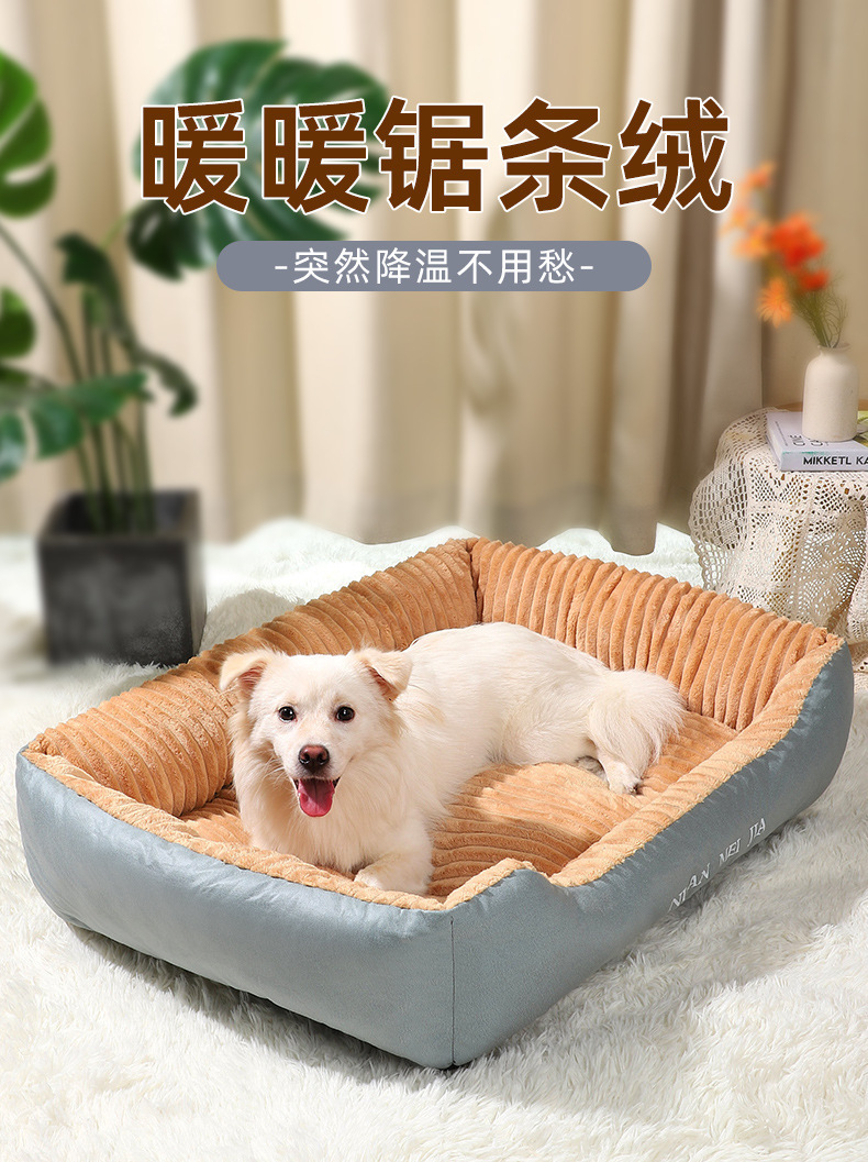 Otoño y invierno nuevo tipo de nido de mascotas, nido de perros rectangulares, cálido y feludo, perros grandes, perros pequeños, nido de perros de rayas encriptadas.