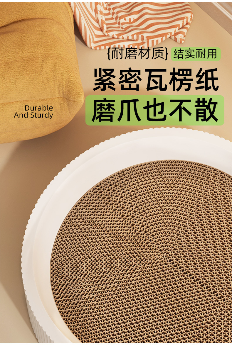 Placa de agarre para gatos redonda reemplazable corrugada resistente al desgaste, caja de agarre para gatos de tamaño extra, juguete para gatos sin desechos