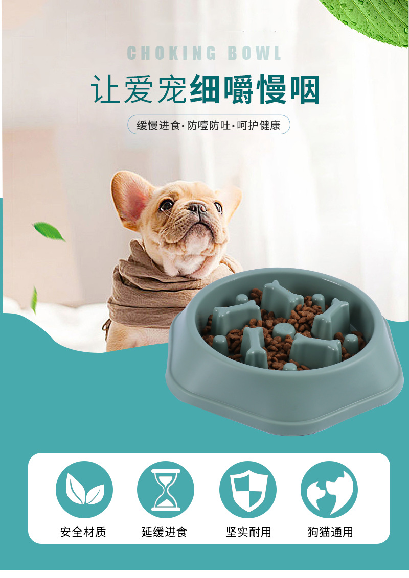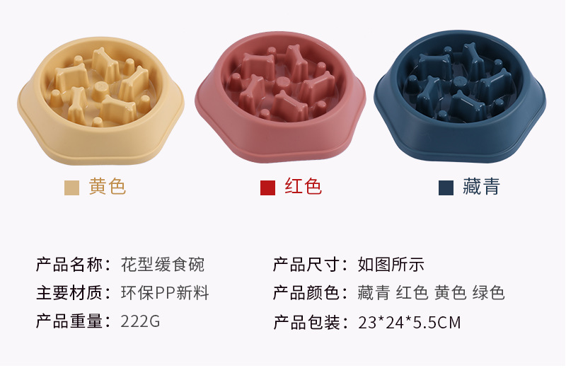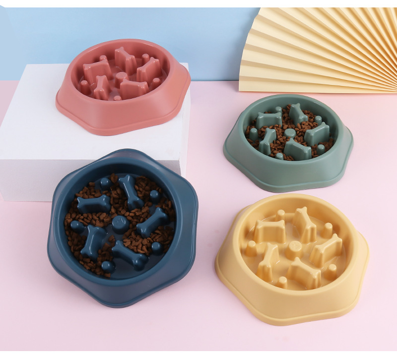 Fabricante en stock anti-estrangulamiento mascota Slow Food Bowl color caja tipo de hueso comida lenta perro tazón de fuente de comida anti-golpe Pet Bowl