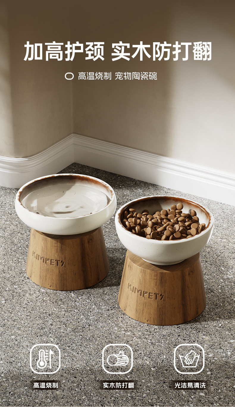Cuenco para gatos, protección de cerámica, columna cervical, cuenco de comida para gatos, cuenco para perros, antivolcado para mascotas, cuenco de agua de pie alto de madera maciza, cuenco de arroz para gatos