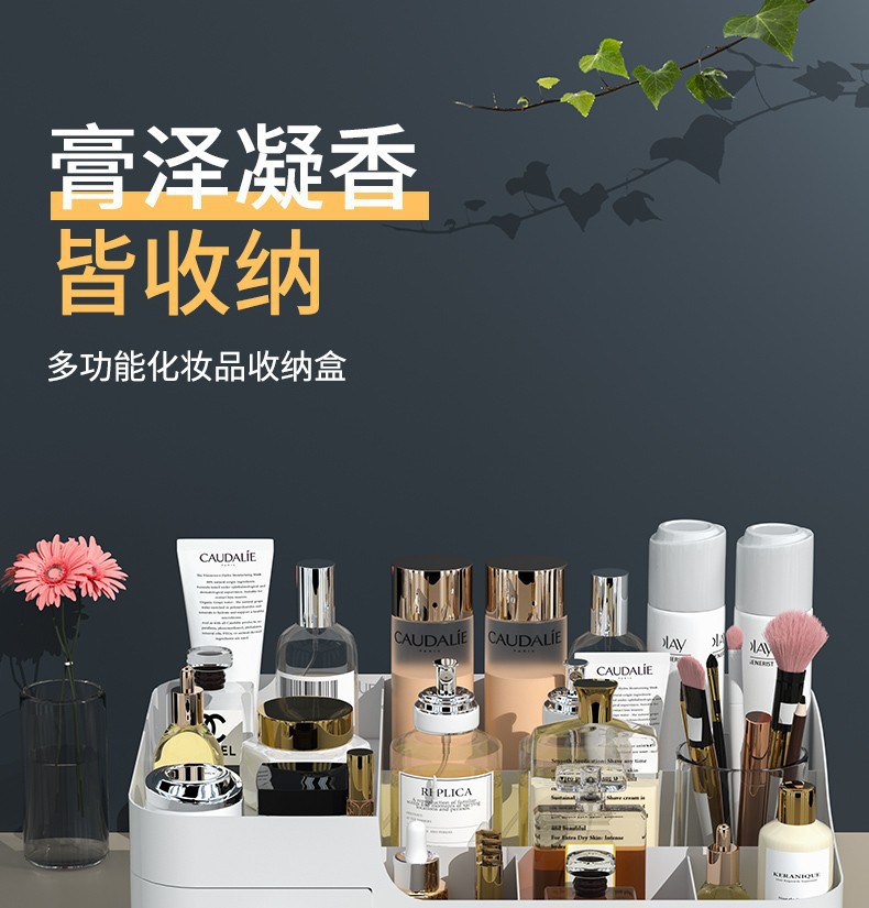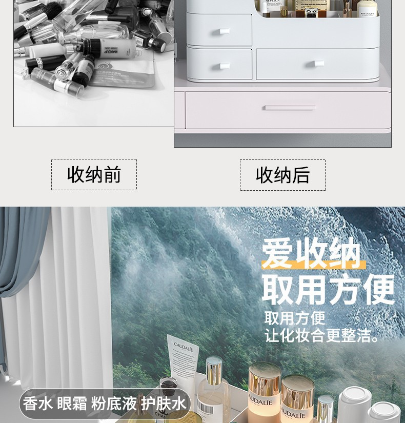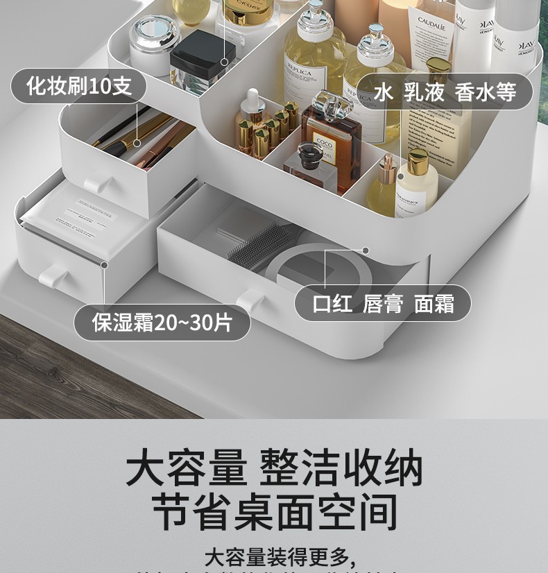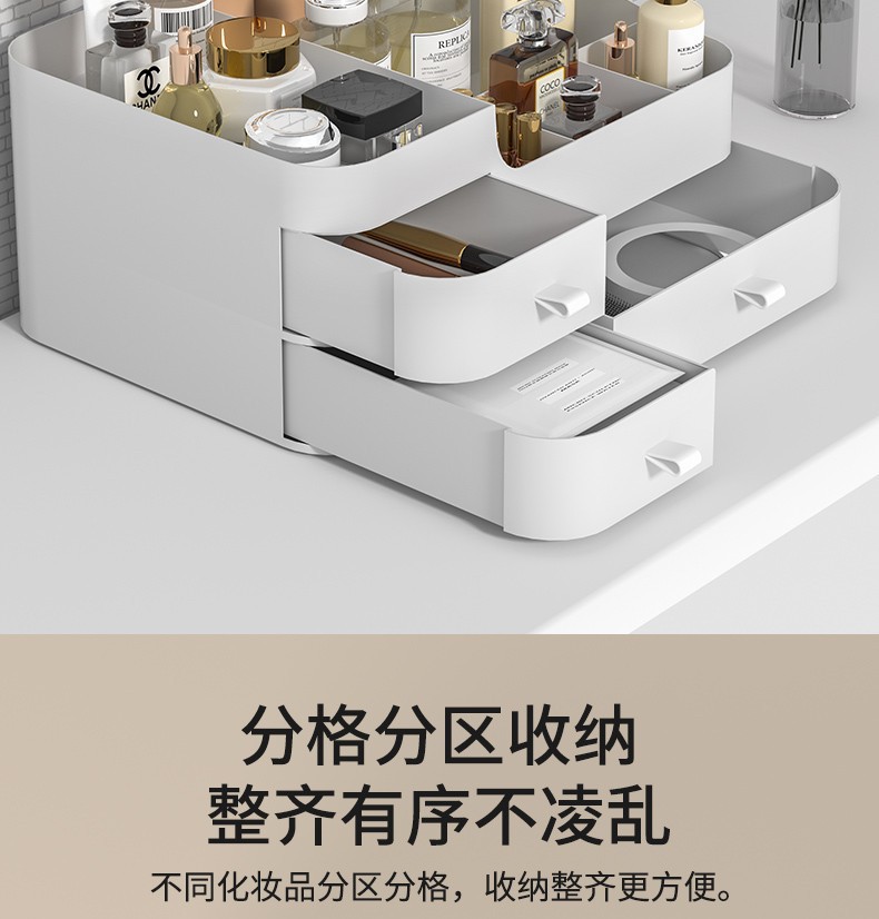 Caja de almacenamiento de cosméticos mesa de tocador estante de productos de cuidado de la piel caja de acabado de lápiz labial caja tipo cajón en la mesa