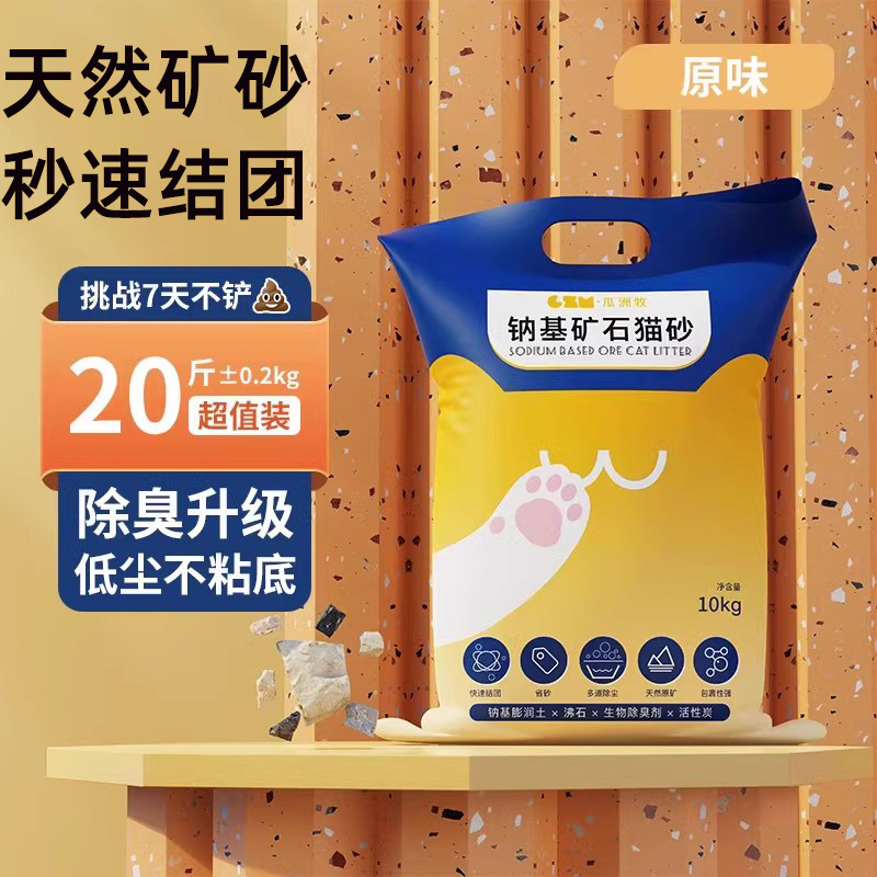 mineral natural a base de sodio arena de gato 10 kg arena de mineral de bajo polvo carbón activado desodorización aglomerados minerales de bentonita arena de gato