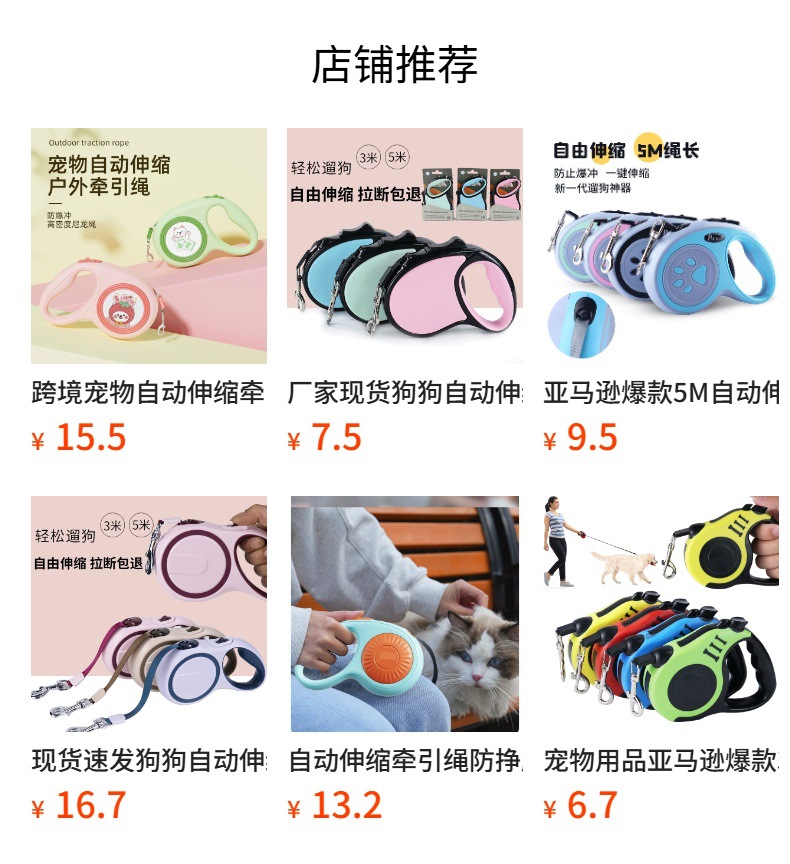Fabricante en stock nuevo 3/5M correa de perro retráctil automático monocromo PET correa de perro correa de Mascota