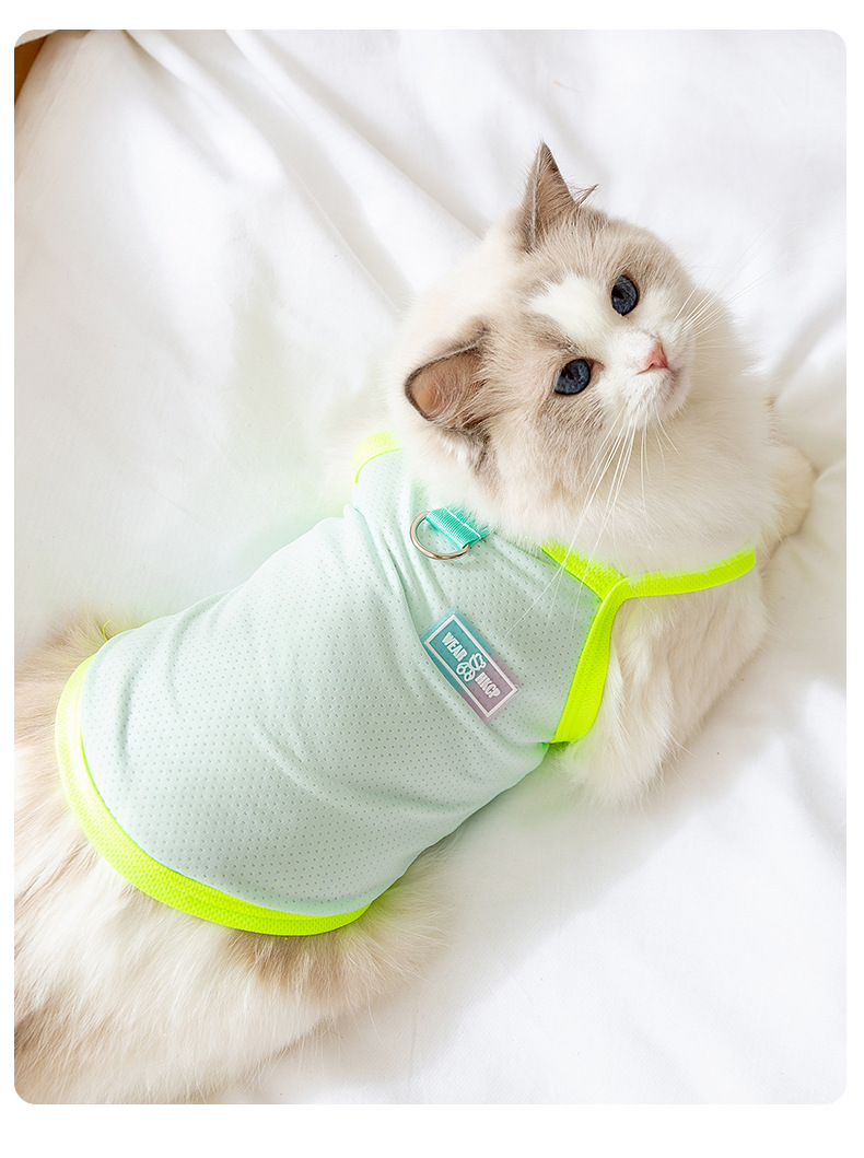 Gato primavera y verano delgado ventilador frío chaleco de cabina de hielo pequeño perro perro gato sin pelo ropa de mascotas