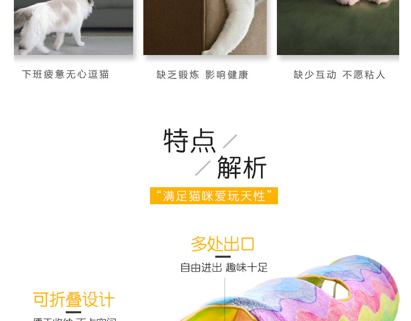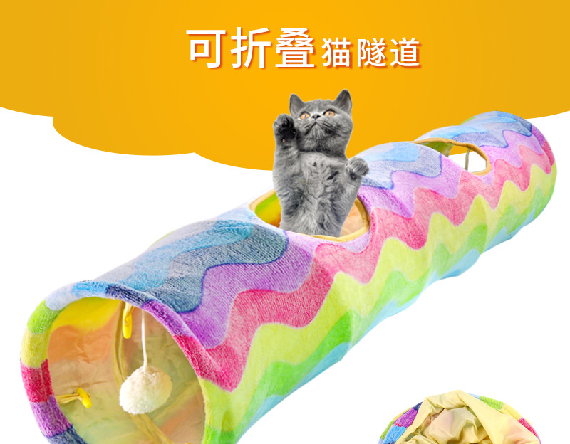Suministros para mascotas Amazon nuevo Anillo de papel arco iris gato túnel resistente a los arañazos plegable gato Túnel de juguete al por mayor