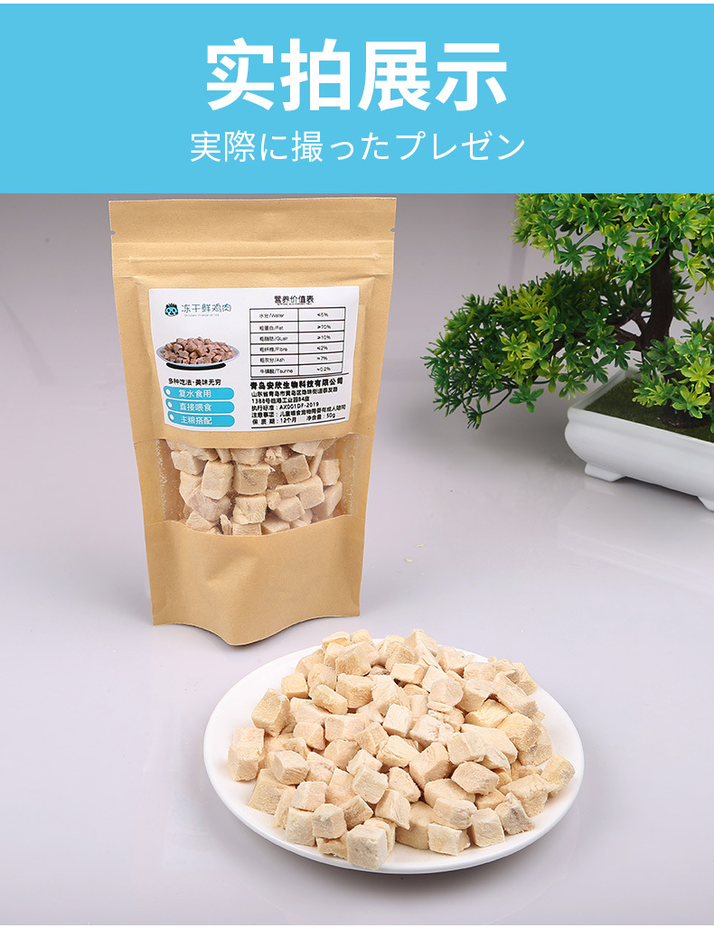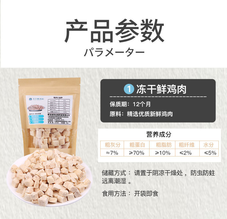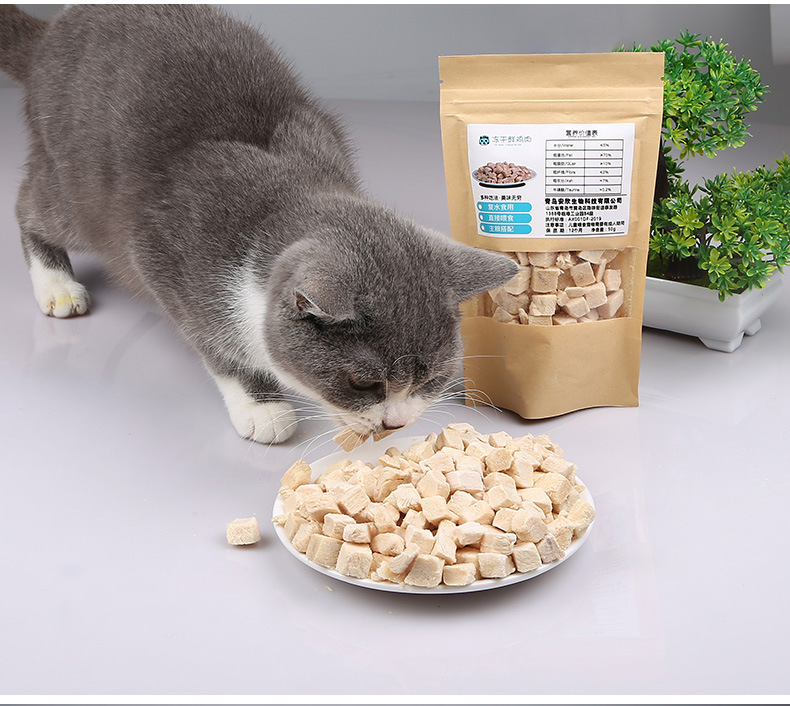 Pet liofilizado al por mayor aperitivos para perros 50g pollo gato codilla comida para gatos para aumentar el peso cabello mejilla suplementos nutricionales para gatos