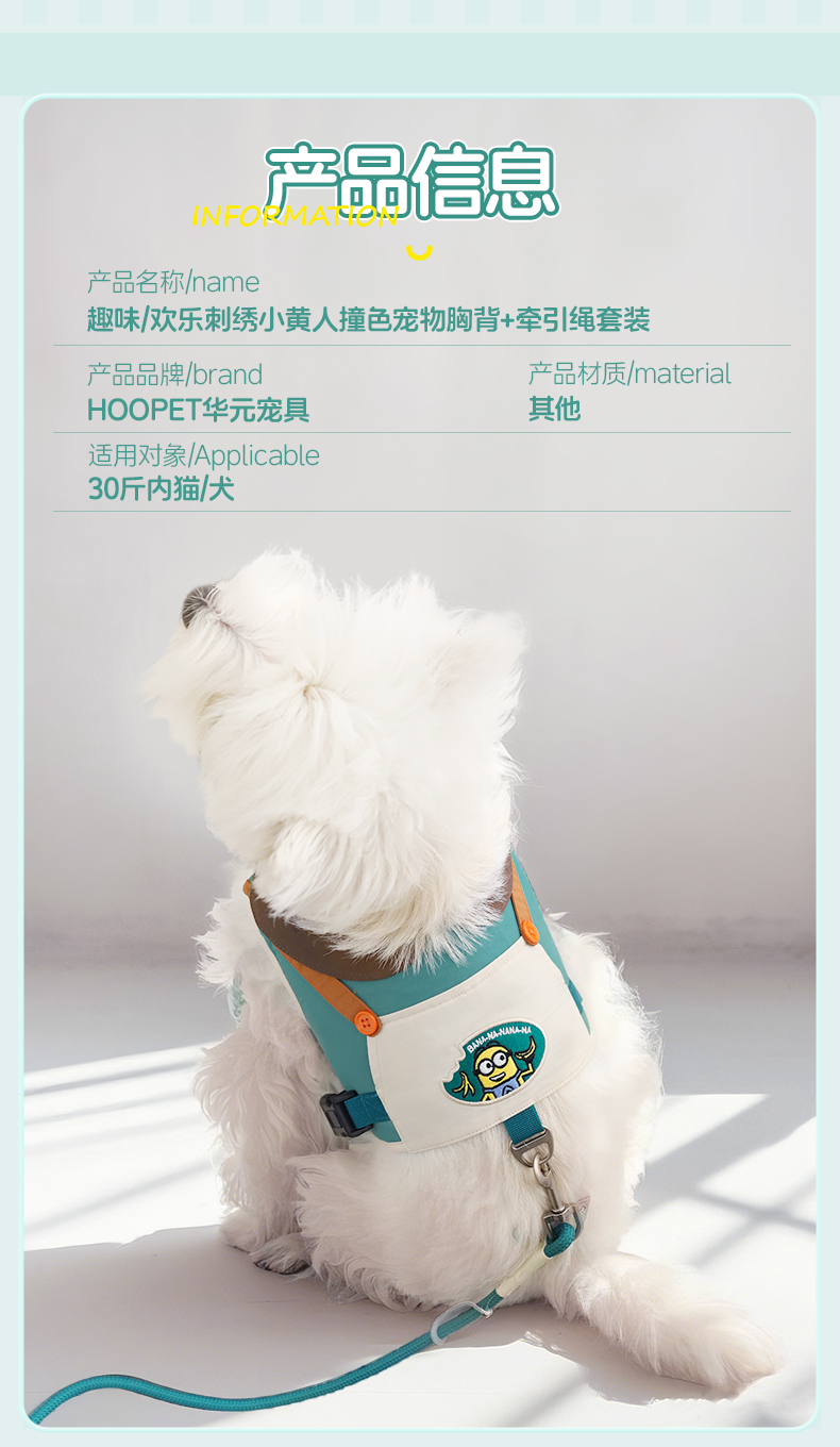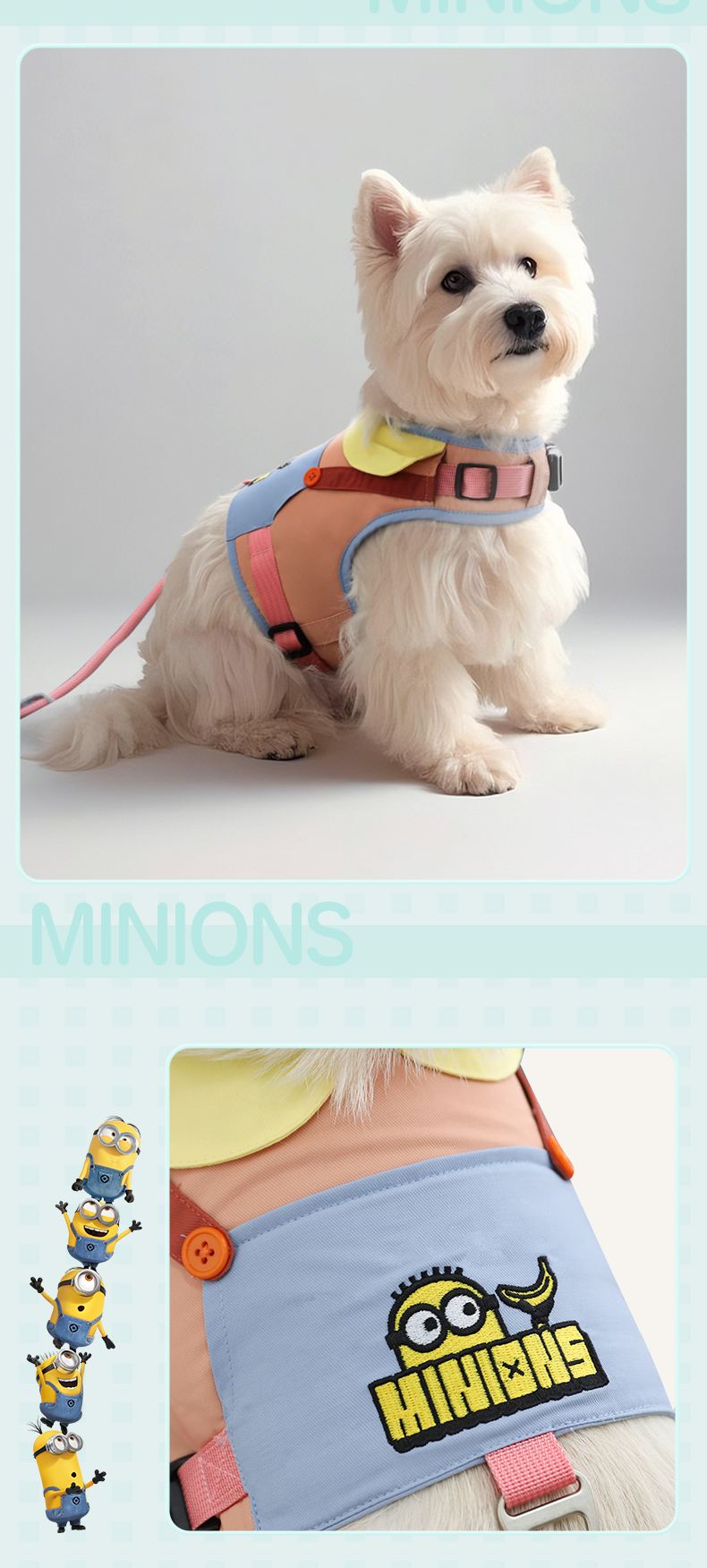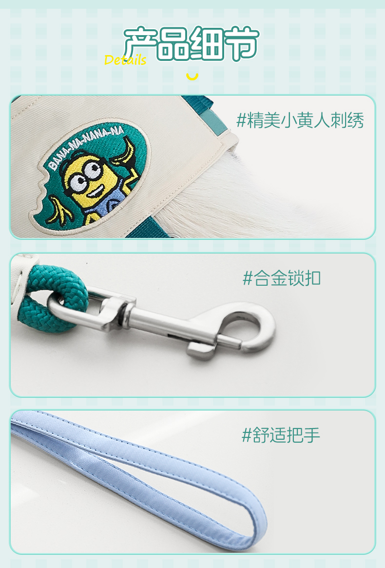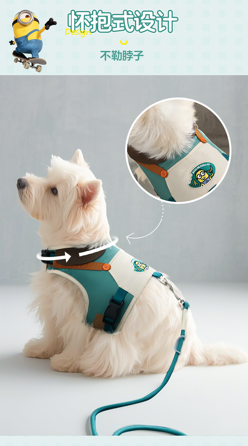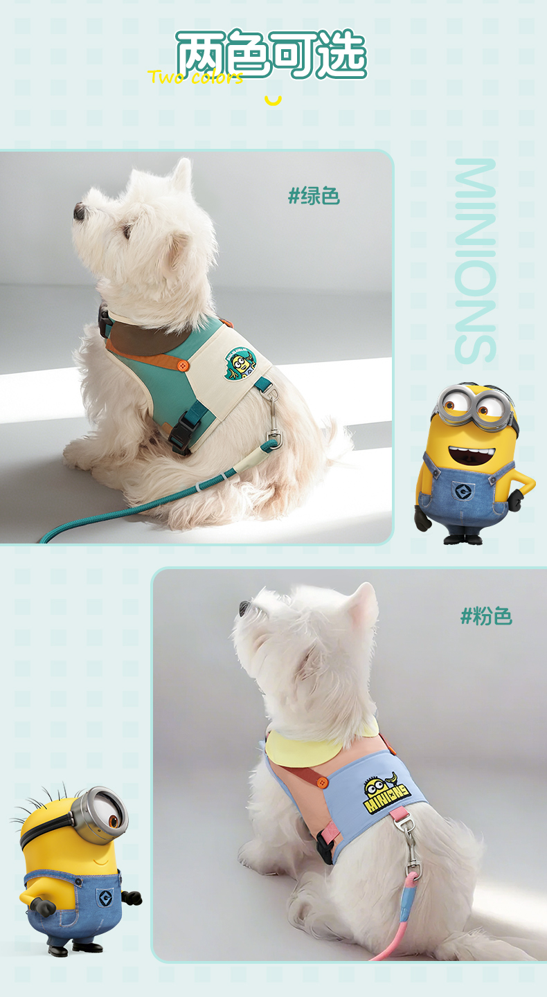 Minions Minions | Conjunto de espalda de pecho de mascota de color de contraste bordado, cadena de perro para pasear, cuerda para perro, correa para perro