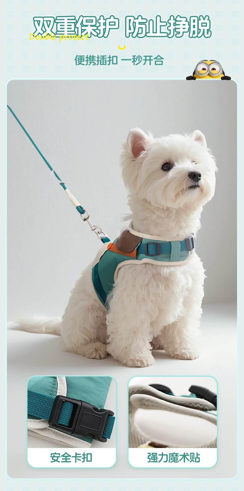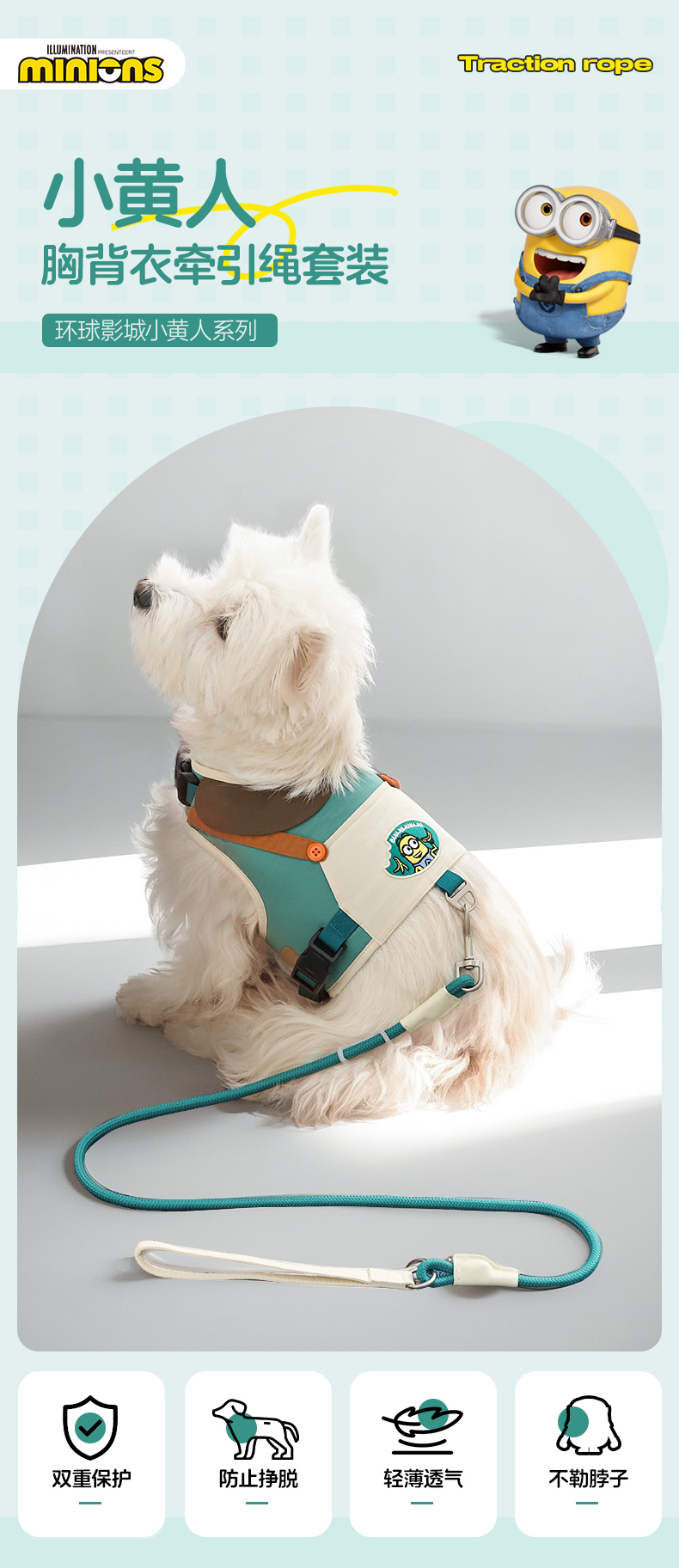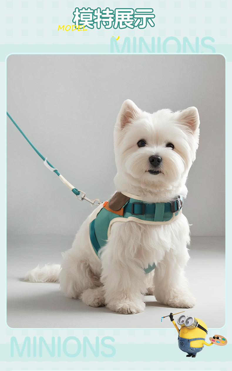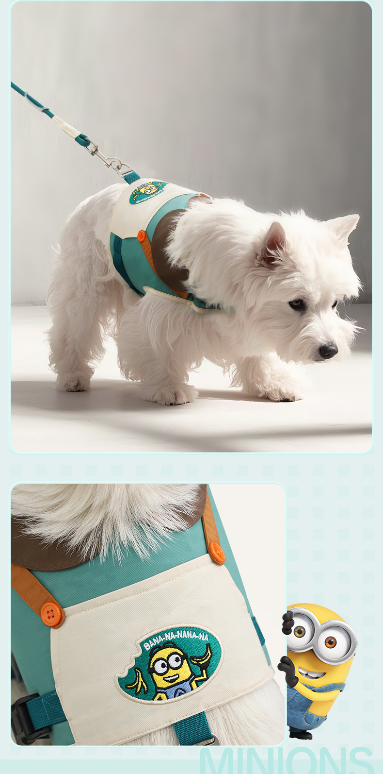 Minions Minions | Conjunto de espalda de pecho de mascota de color de contraste bordado, cadena de perro para pasear, cuerda para perro, correa para perro