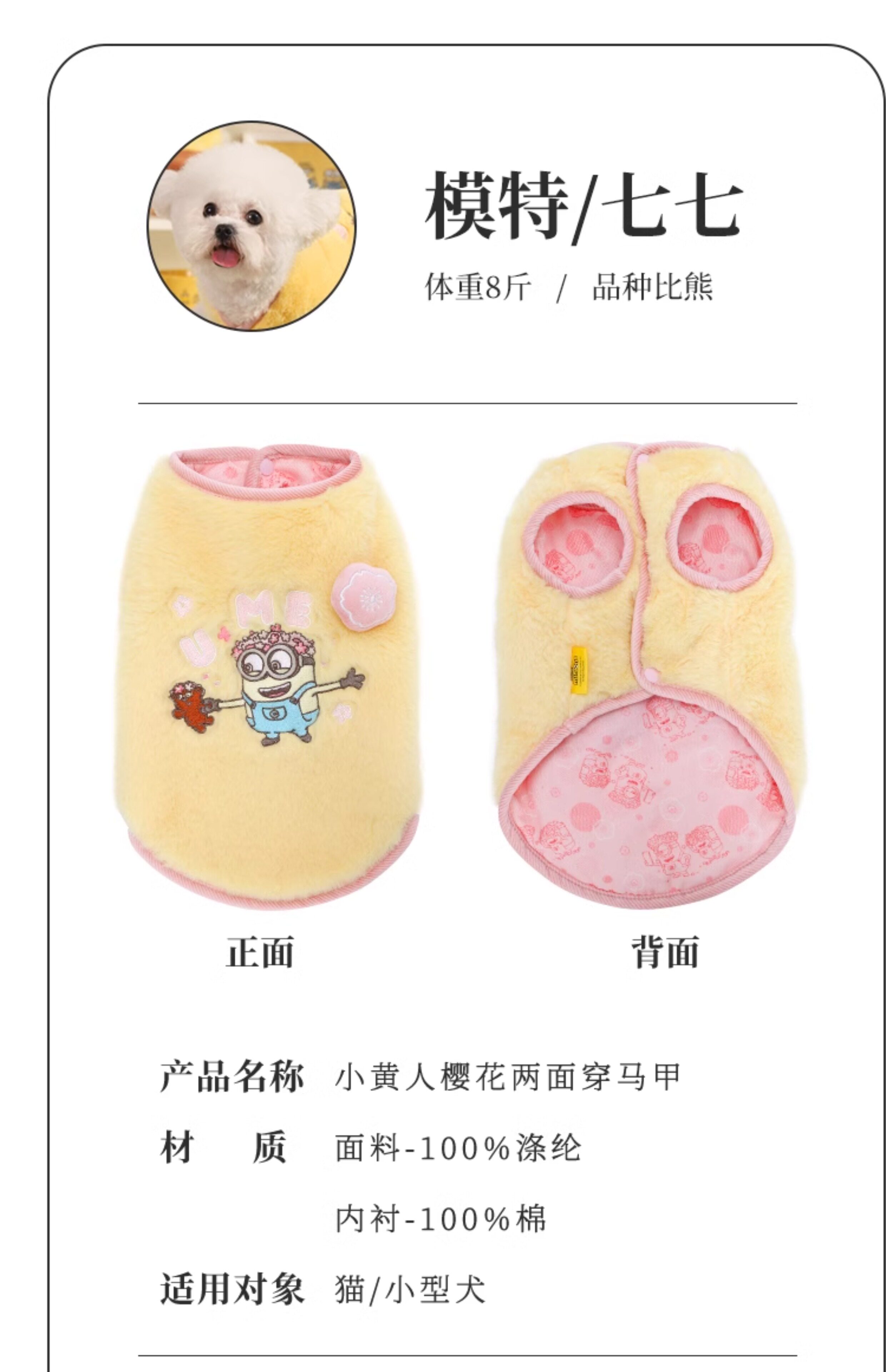 Miniones Amarillos| Cherry blossom chaleco mascota ropa de cachorro gato otoño invierno ropa de perro