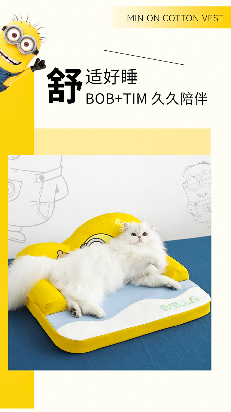 Miniones Amarillos| Cojín de respaldo ondulado, cojín de dormir para gatos, cojín de dormir para perros, cojín de gato para mascotas, cojín de perro