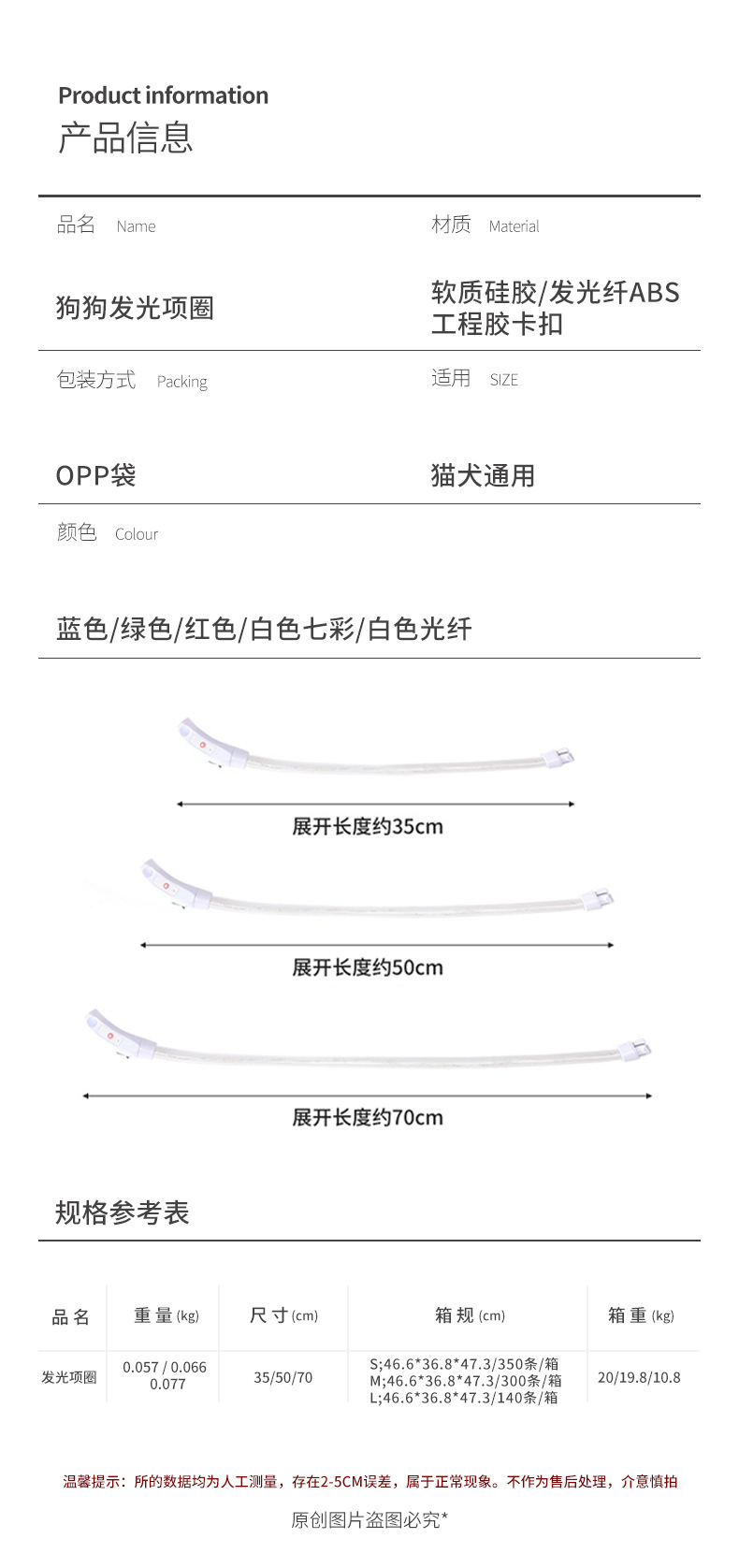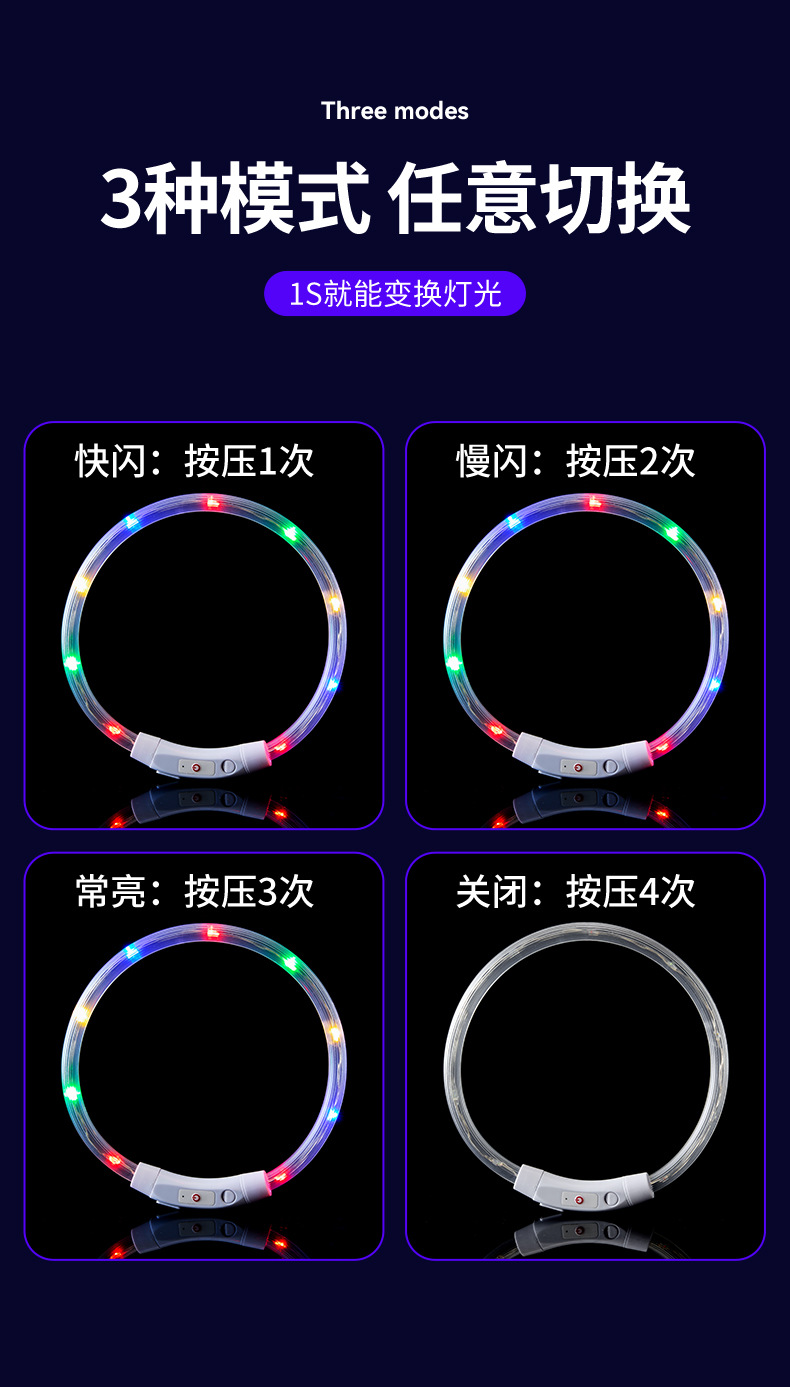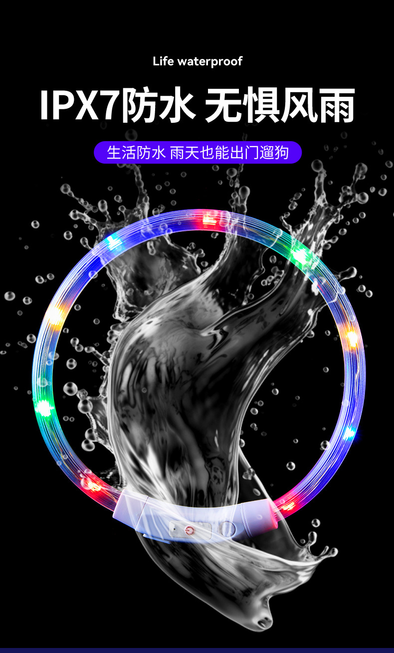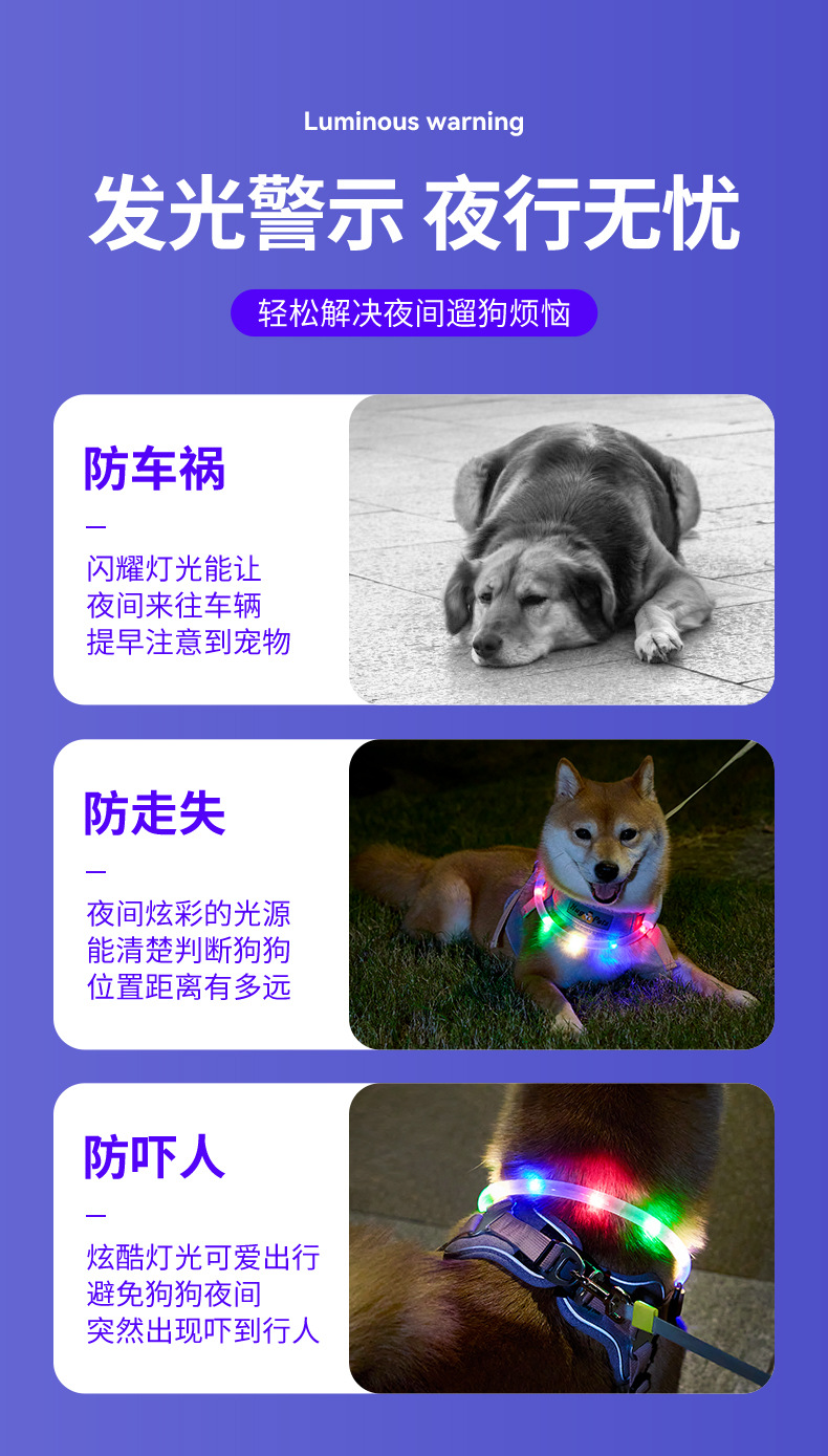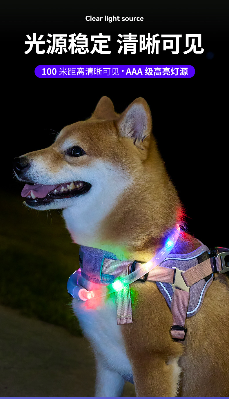 Collar luminoso para perros, anti-pérdida nocturna, impermeable, carga USB, collar colorido para mascotas, suministros de corte de bricolaje