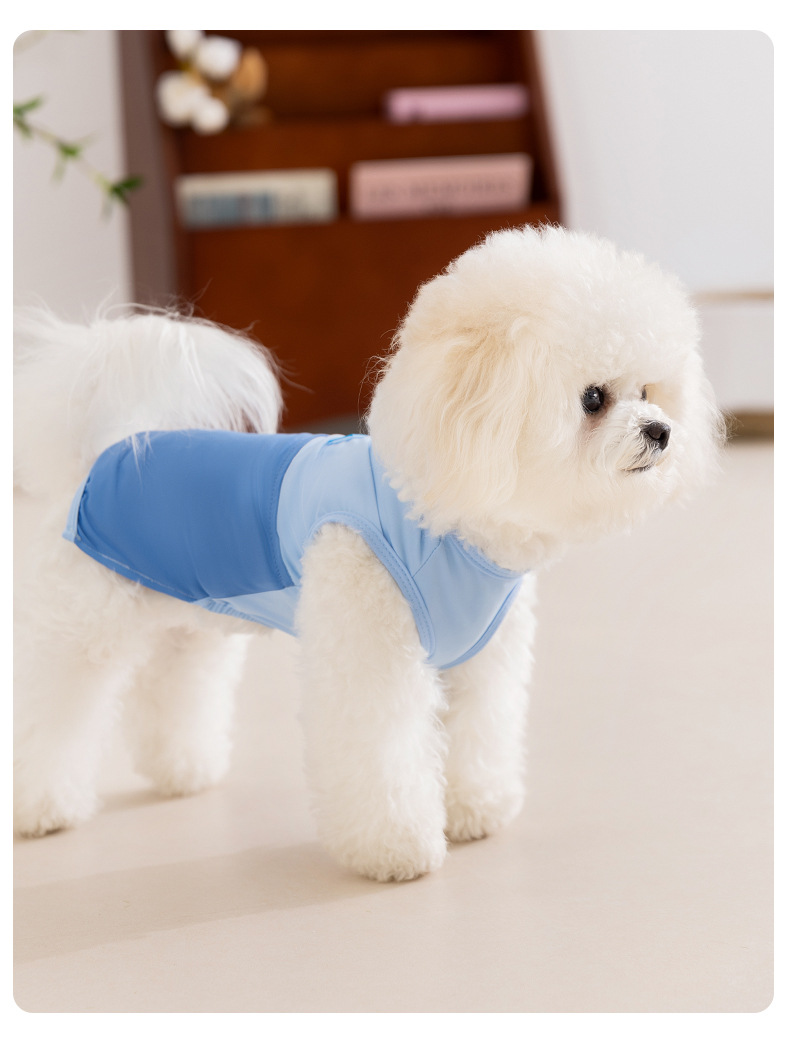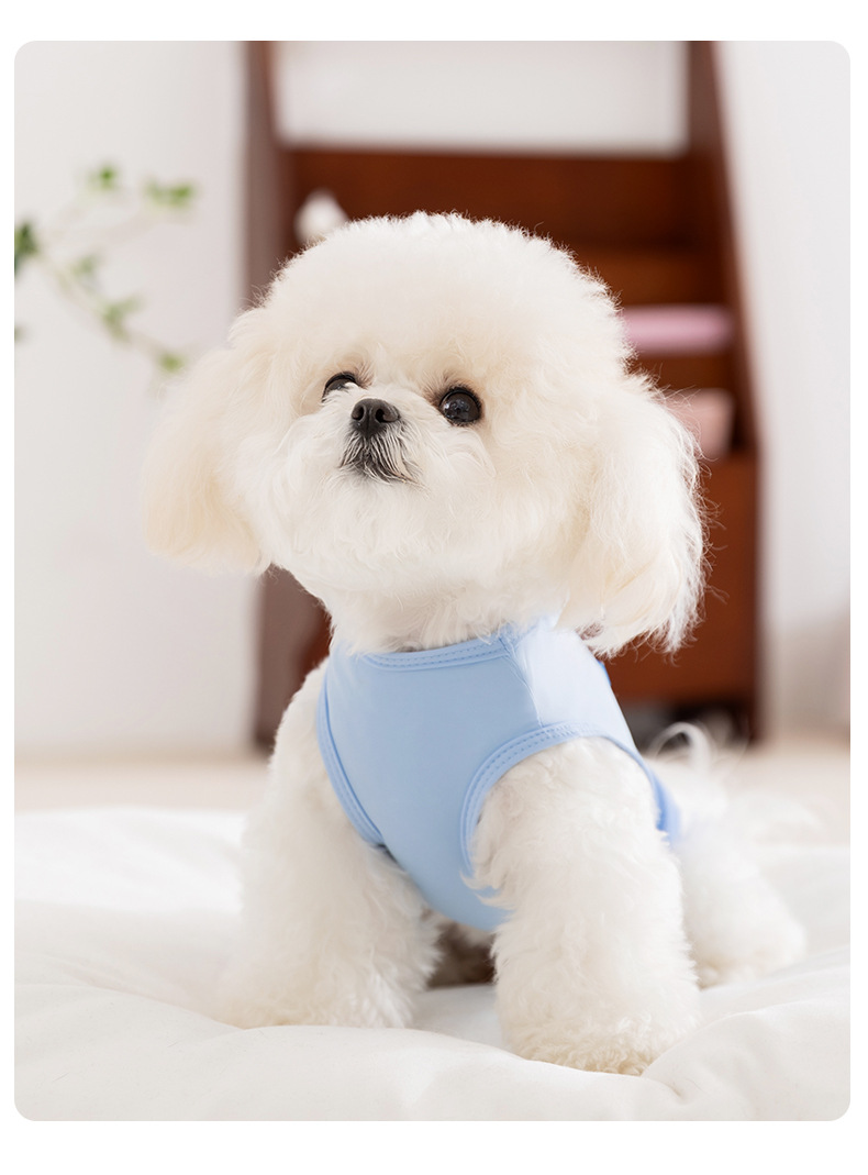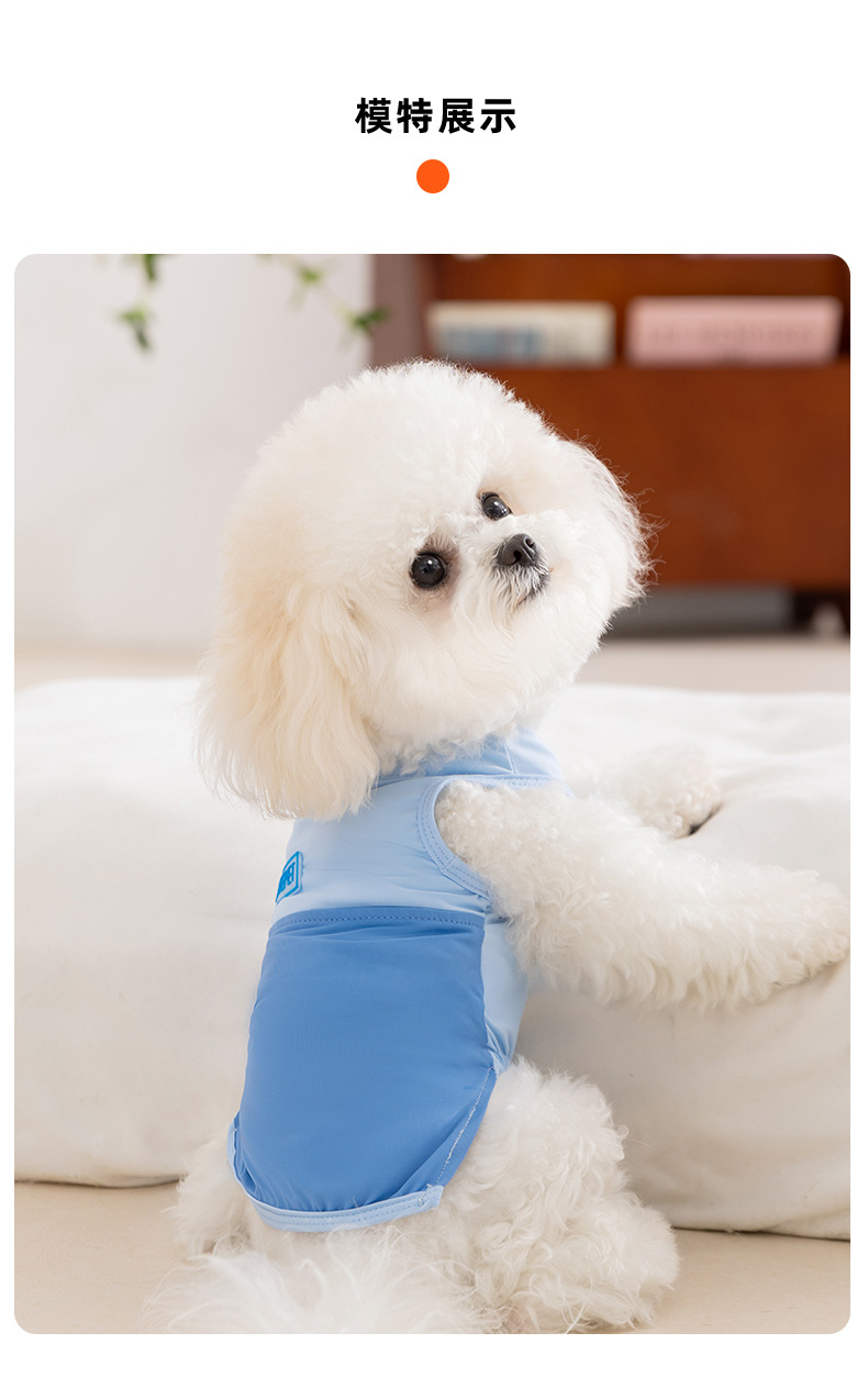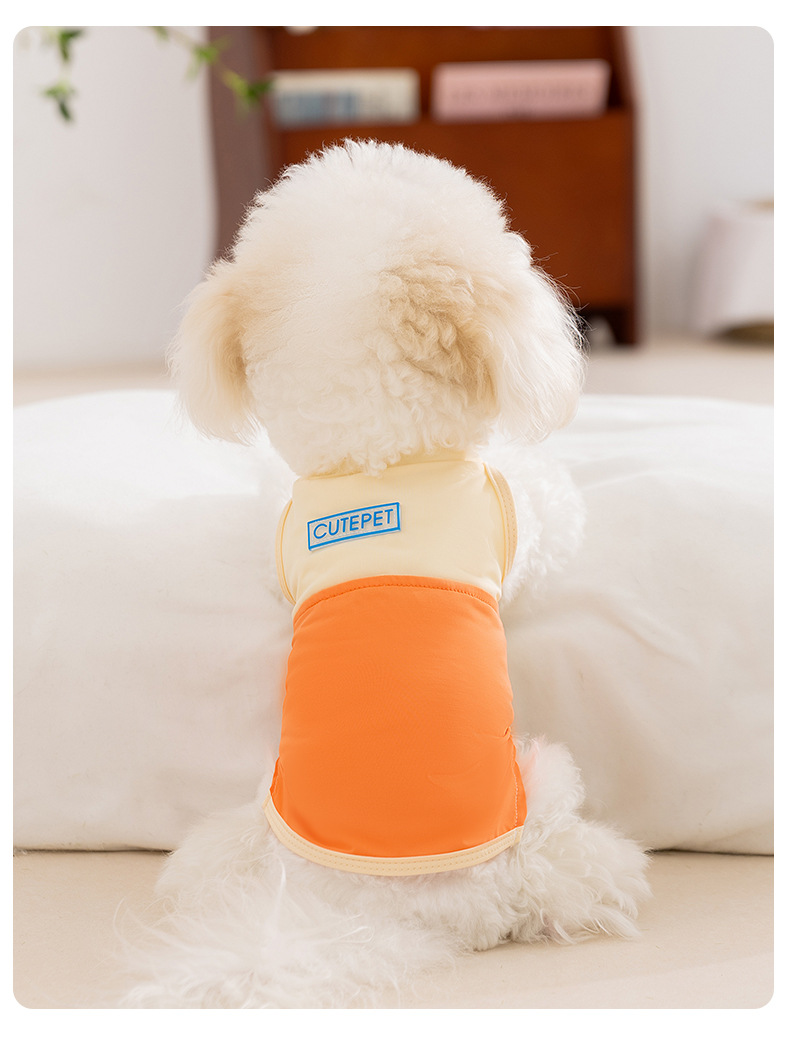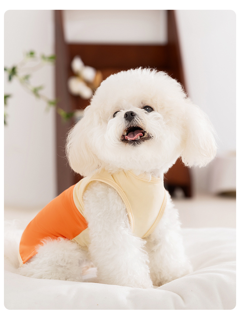 Chaleco de costura de color de contraste simple transpirable delgado para perros de primavera y verano, ropa de perro de peluche para perros pequeños y medianos, ropa para mascotas