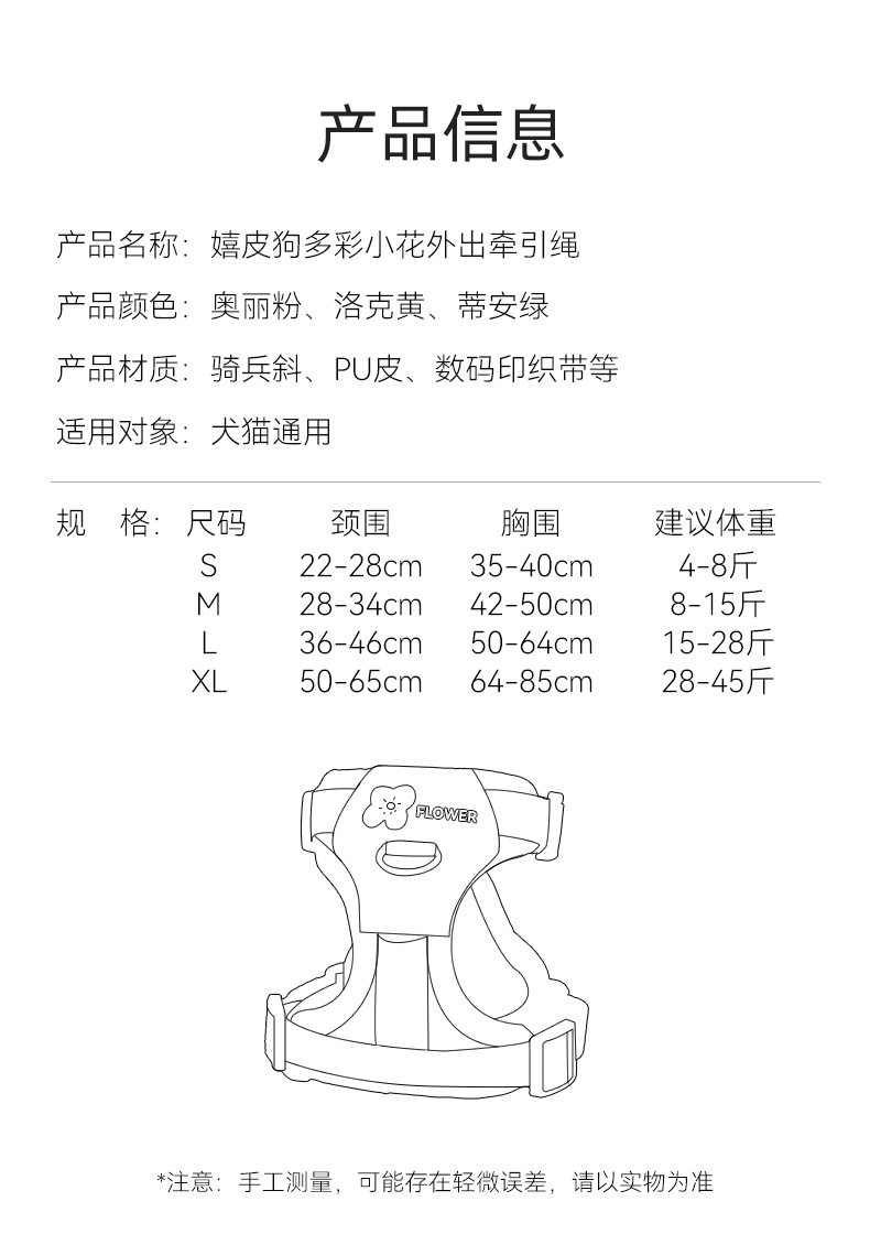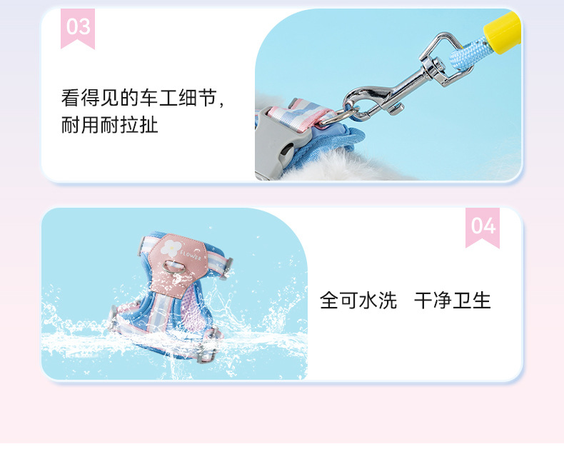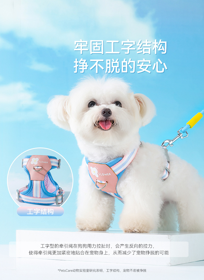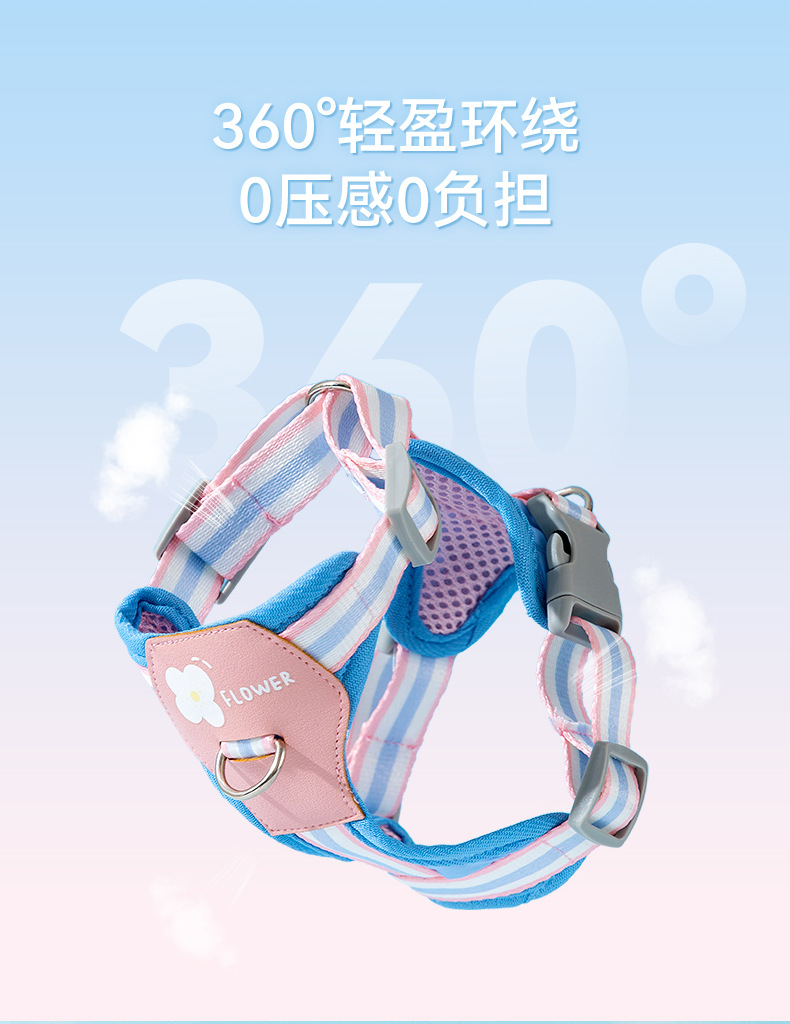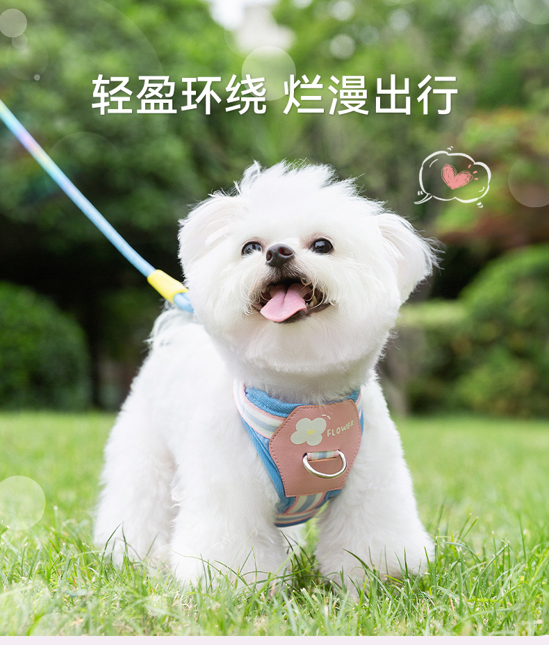 Four Seasons General Dog Outing Colorful Little Flower Rayas Correa en el pecho Chaleco de gato Cuerda de tracción para mascotas