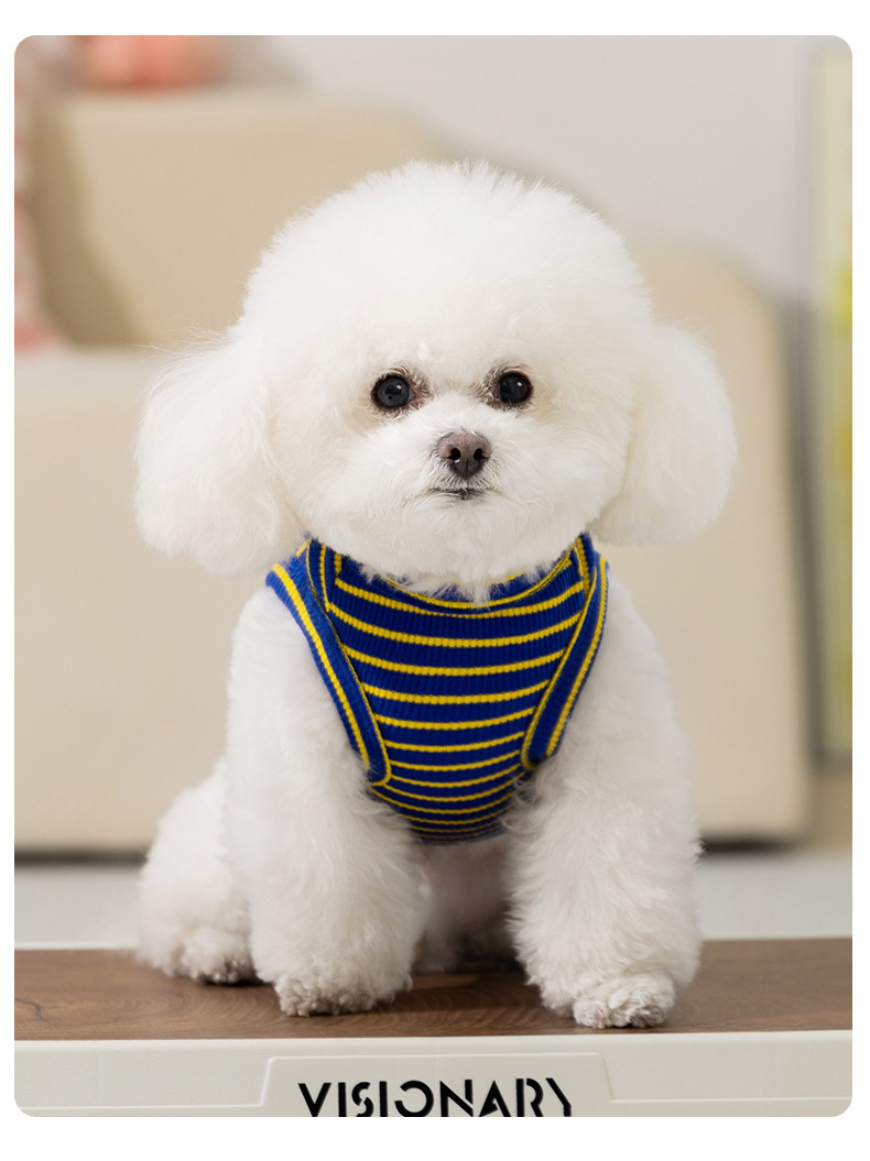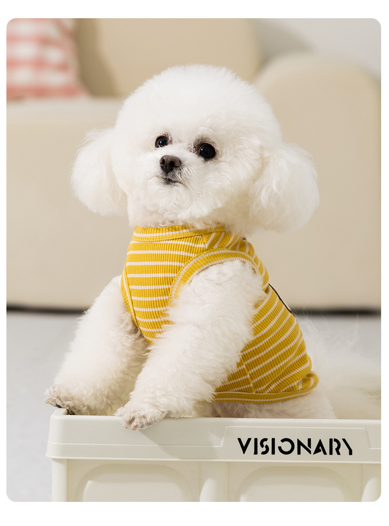 Primavera y verano coreanos lindos chalecos rayados gatos transpirables delgados Teddy Bear ropa de perro de verano
