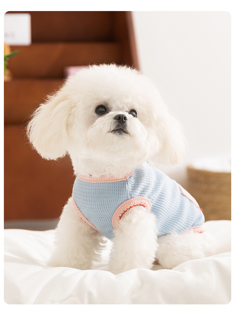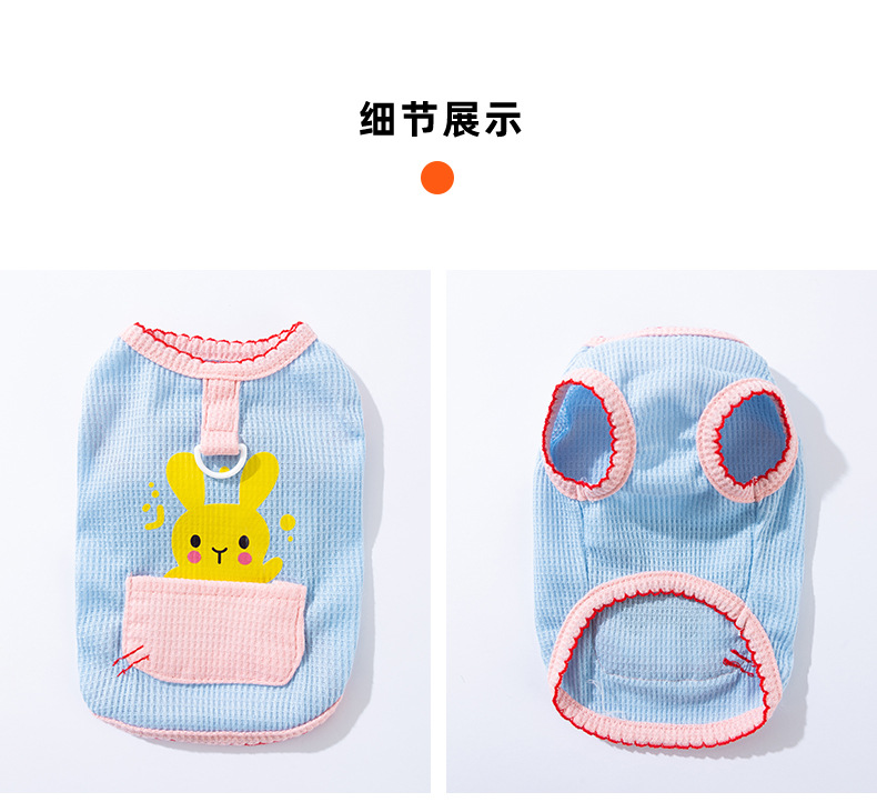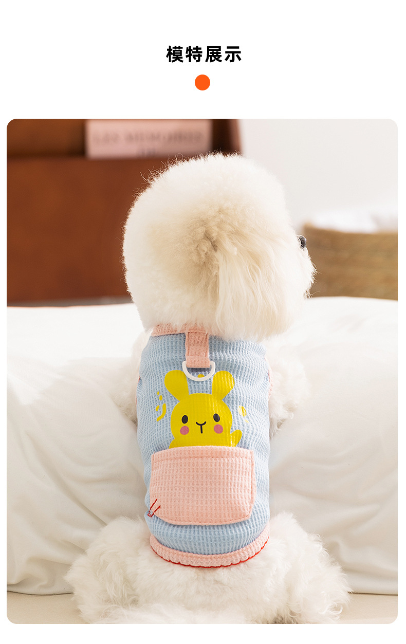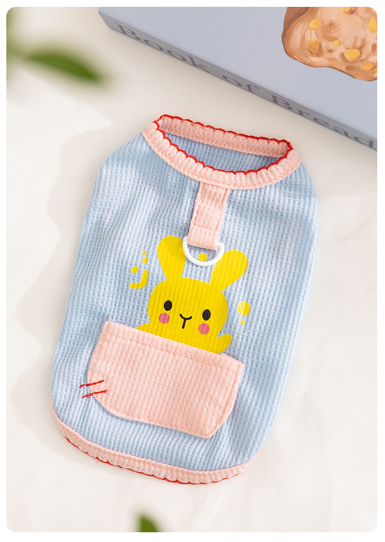 Primavera y verano perro lindo conejito dibujos animados bolsillo chaleco gato perro mediano y pequeño ropa delgada de peluche para mascotas