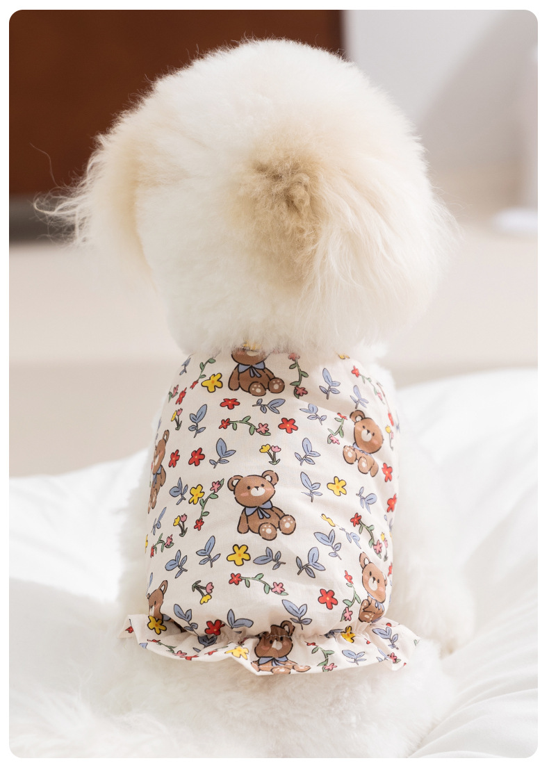 Perro primavera verano princesa viento lindo oso colgante floral falda de calabaza vestido de gato falda de perro ropa para mascotas