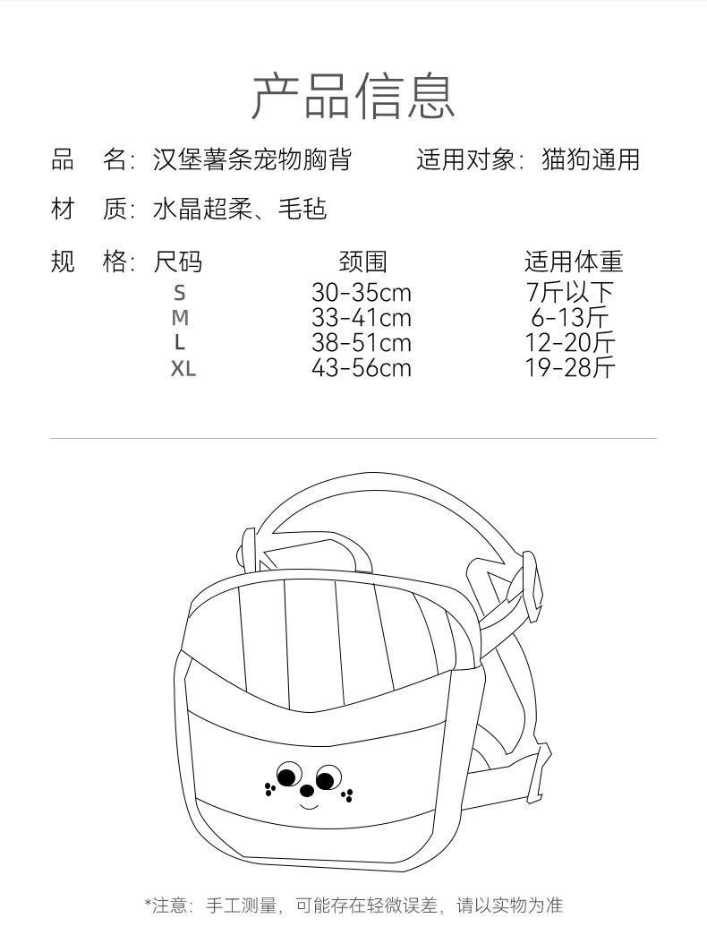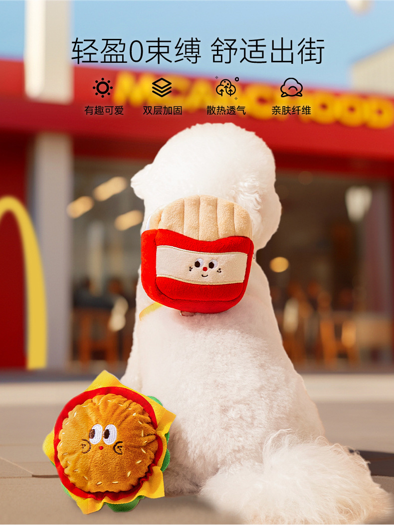Perro lindo hamburguesa papas fritas mochila correa para mascotas correa de pecho perro caminando cuerda gato caminando cuerda