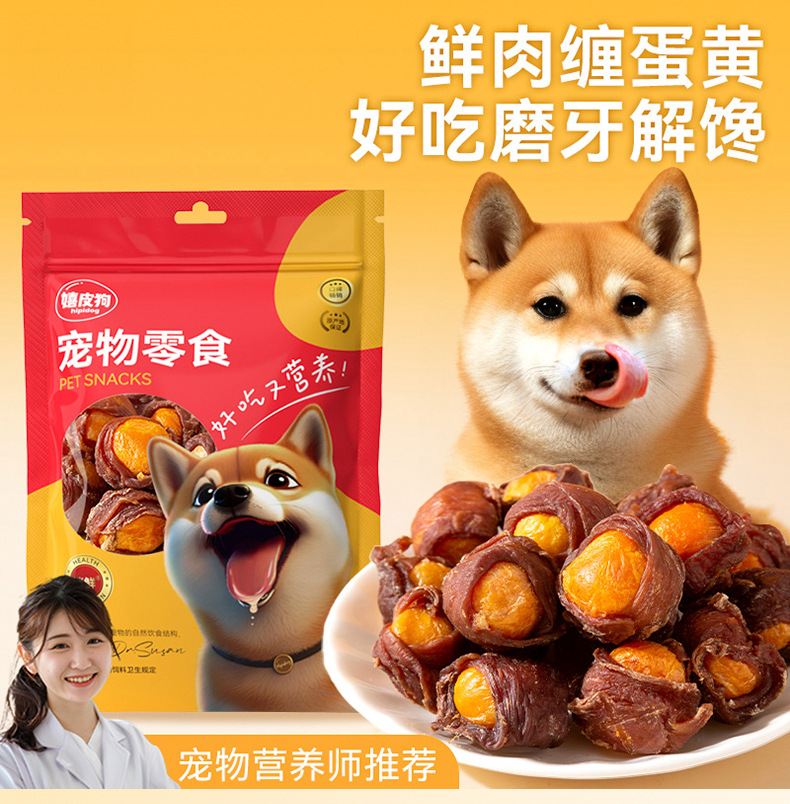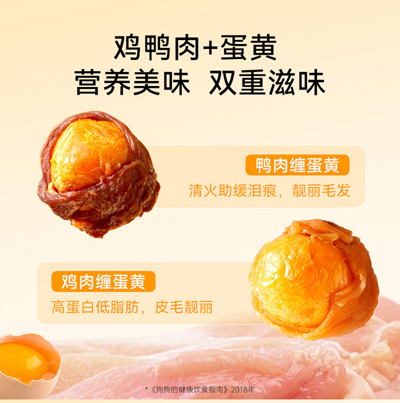 Perro pequeño y mediano, pollo y pato, huevo envuelto, dientes molares, entrenamiento resistente a la mordida, 100g, peluche de pelo dorado, bocadillos para perros.