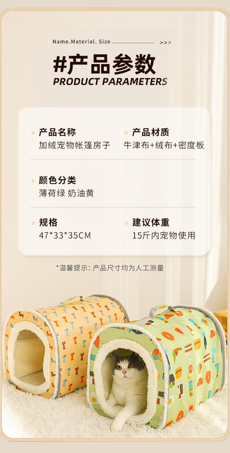 | Especificaciones | Tienda forrada de lana Cat House (amarillo crema),Tienda forrada de vellón Cat House (verde menta) |