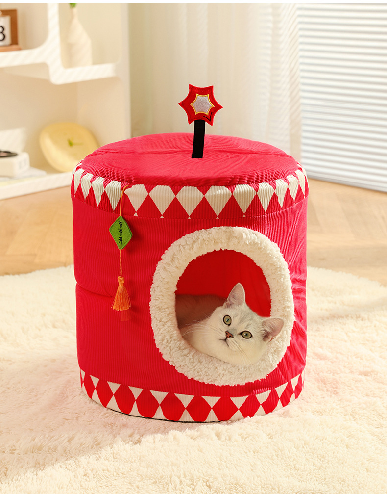 Gato perrera invierno cálido semi-cerrado gato nido suministros para mascotas gato casa gato cama caqui Ruyi casa al por mayor