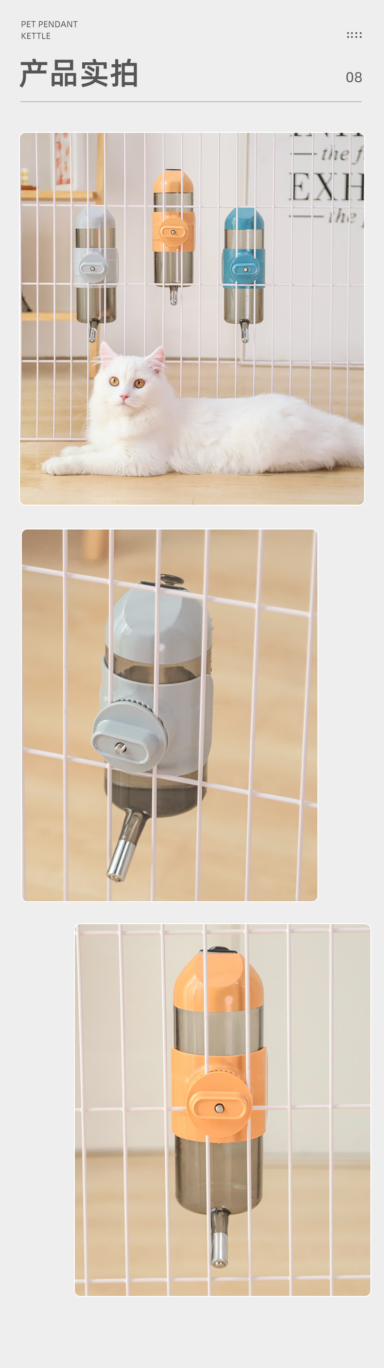 Mascota colgando translúcido fuente de beber perro no-hervidor de agua boca húmeda en jaula de gatito colgando botella de bebida automática