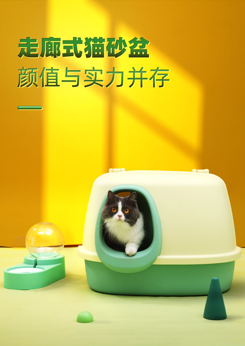 Caja de arena para gatos corredor semi-cerrado desodorante de gran tamaño canal largo anti-Arena gatito suministros de inodoro