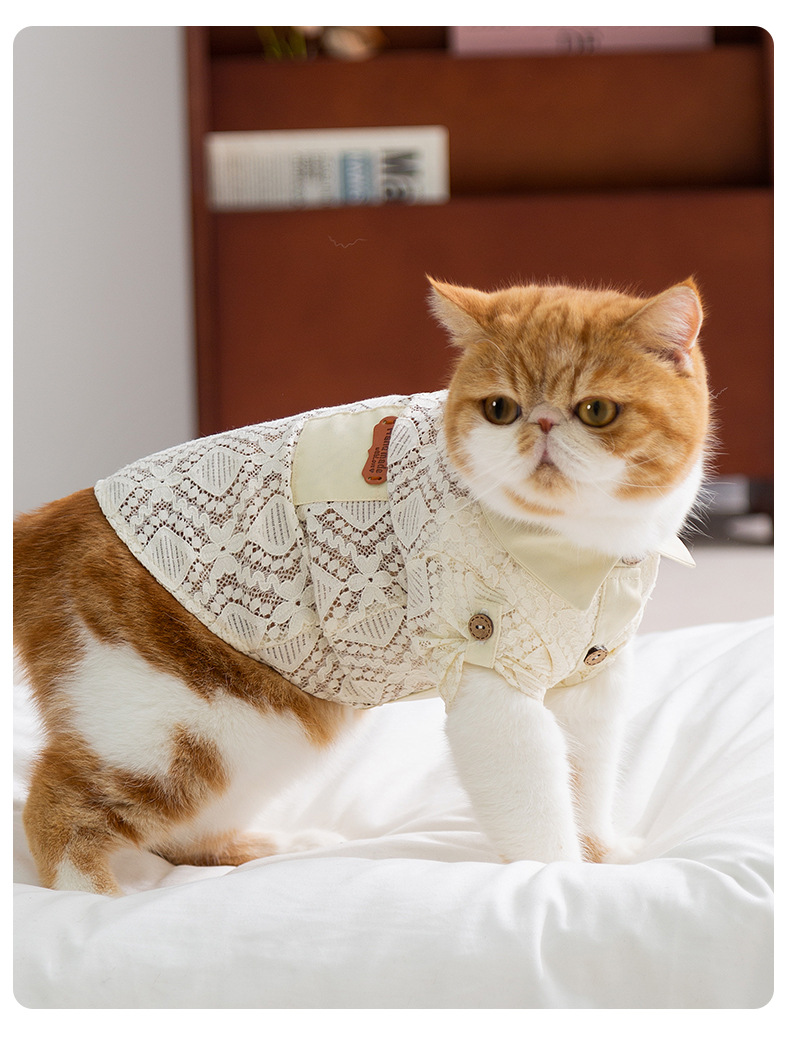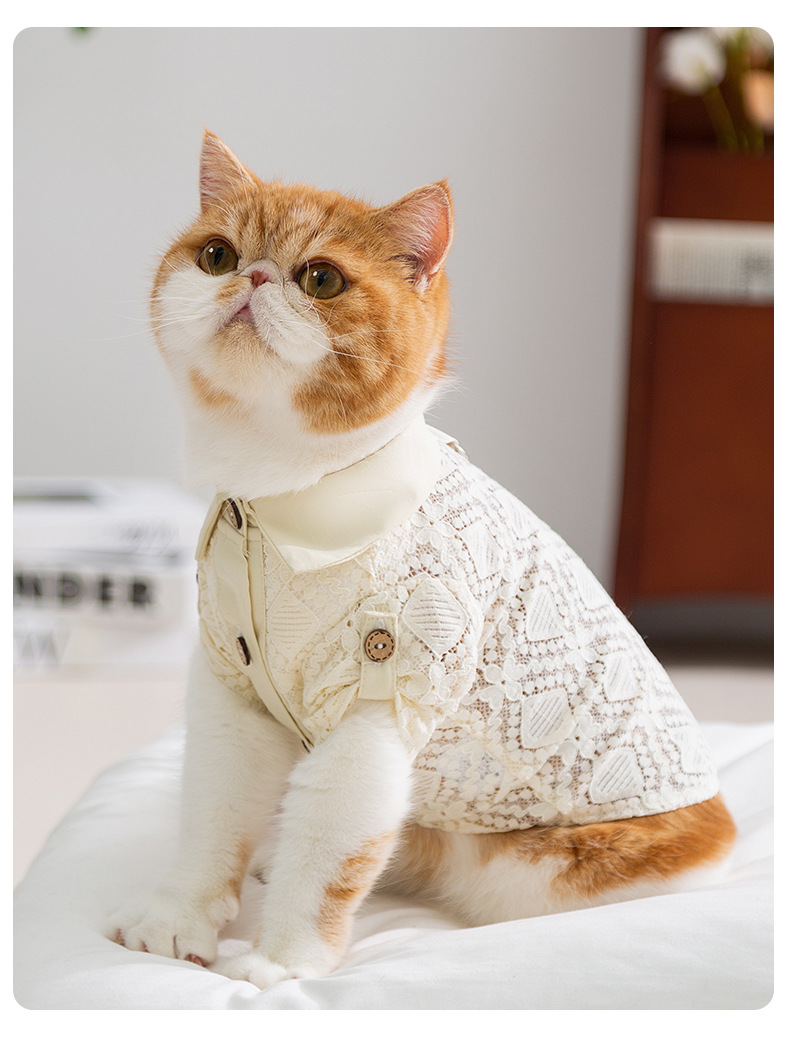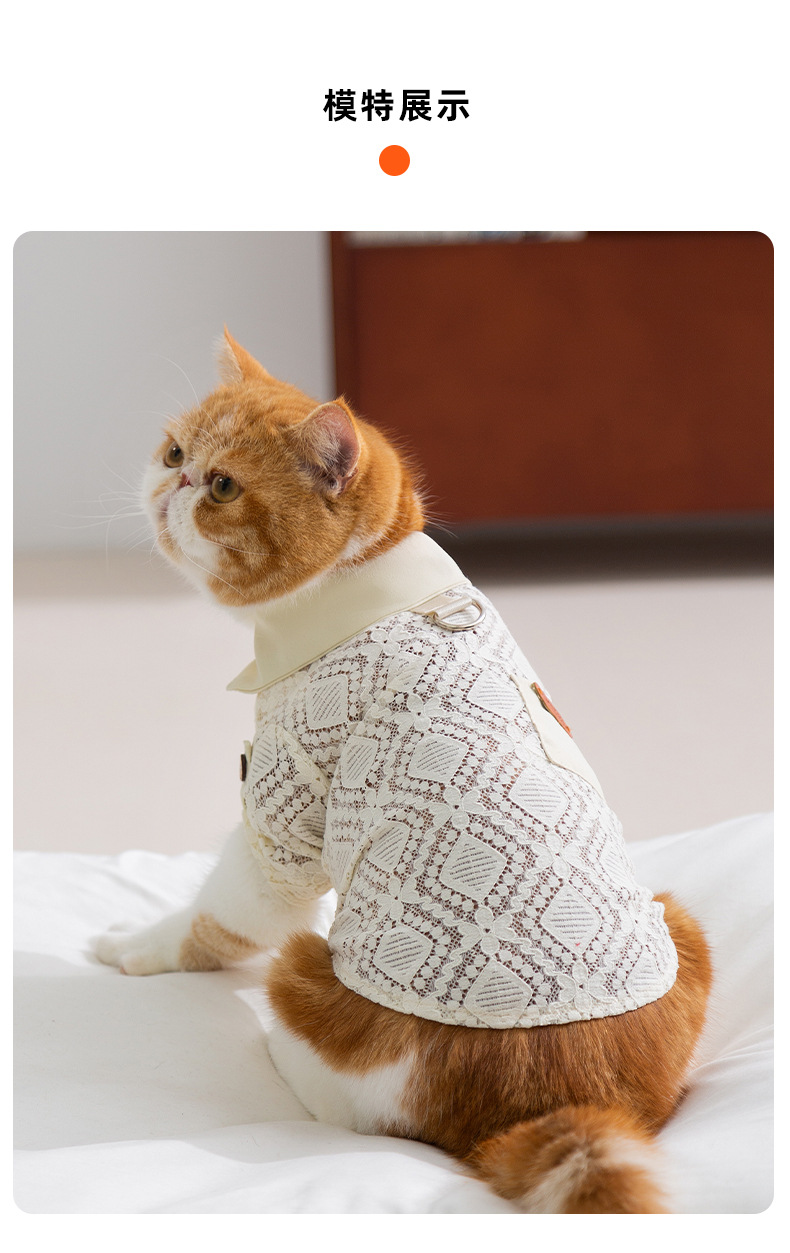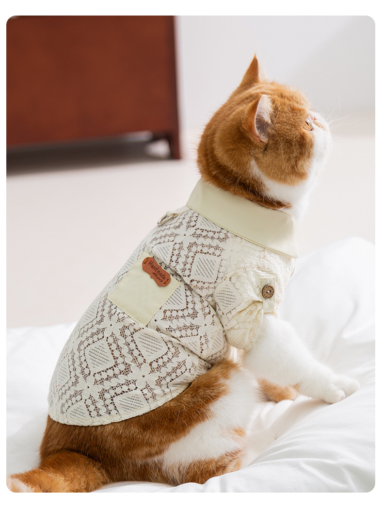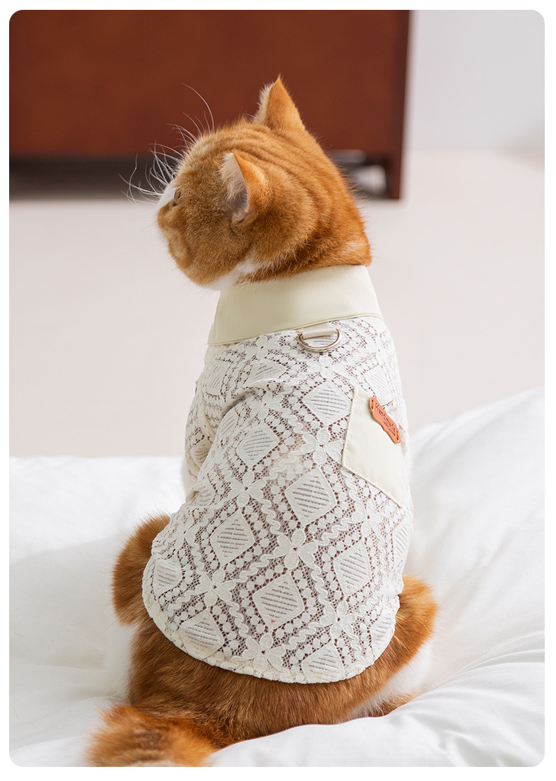Primavera y verano gatos sin pelo gatos bolsillos de encaje camisa de dos patas perros pequeños y medianos chaleco hueco ropa de mascotas