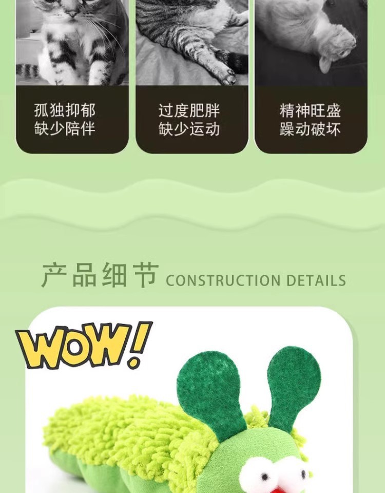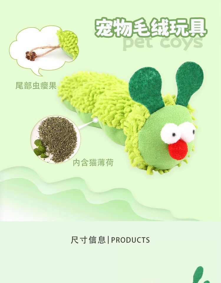 Caterpillar juguetes para gatos, hierba de gato, agallas de insectos, fruta, artefacto para aliviar el aburrimiento, papel de sonido, peluche para gatos