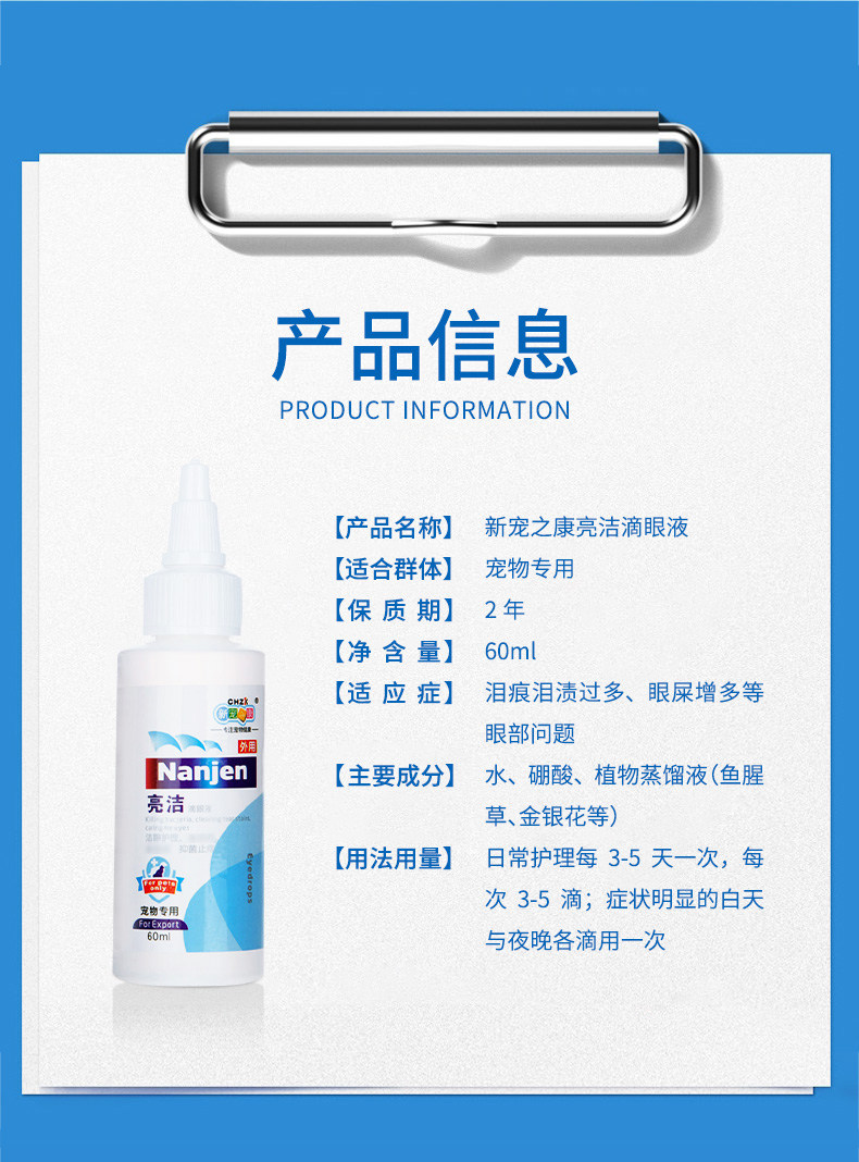 | Eficacia | Limpiar los ojos, eliminar la mierda de los ojos y evitar las lágrimas |