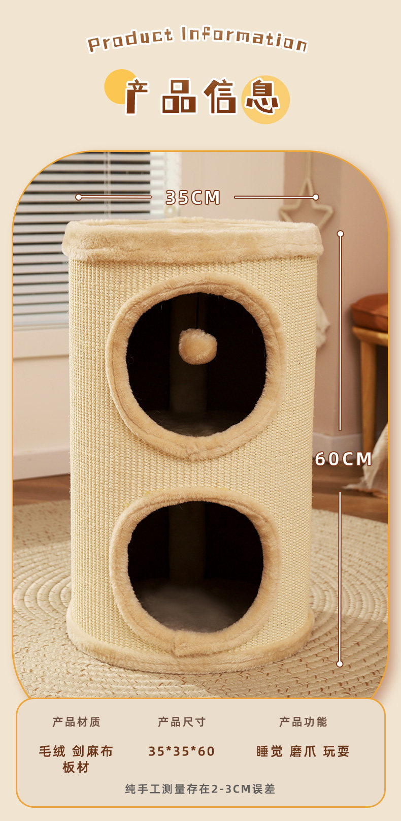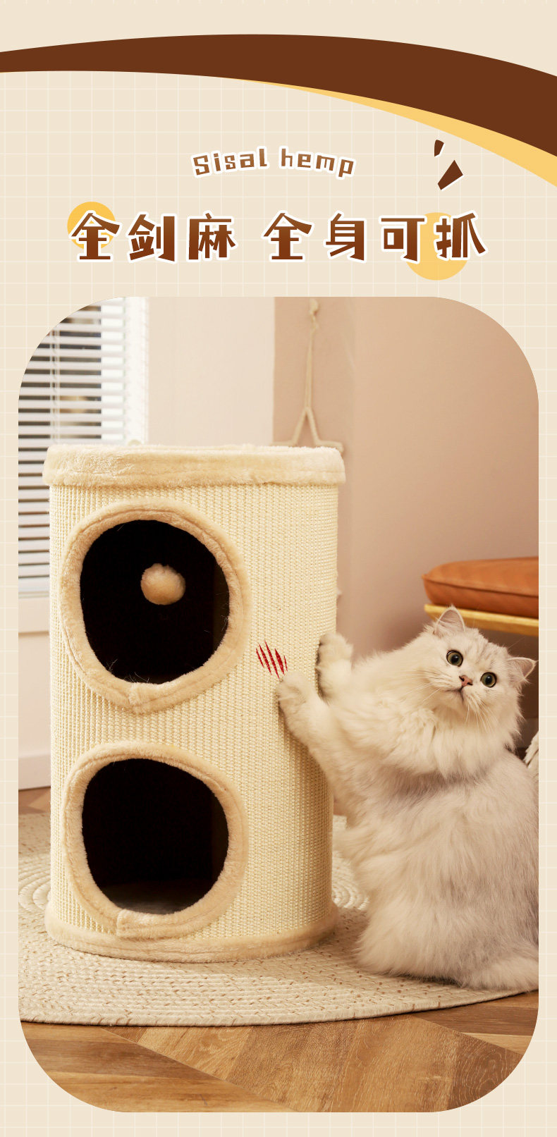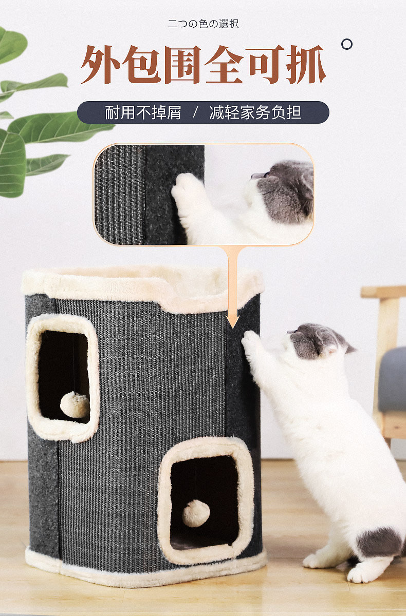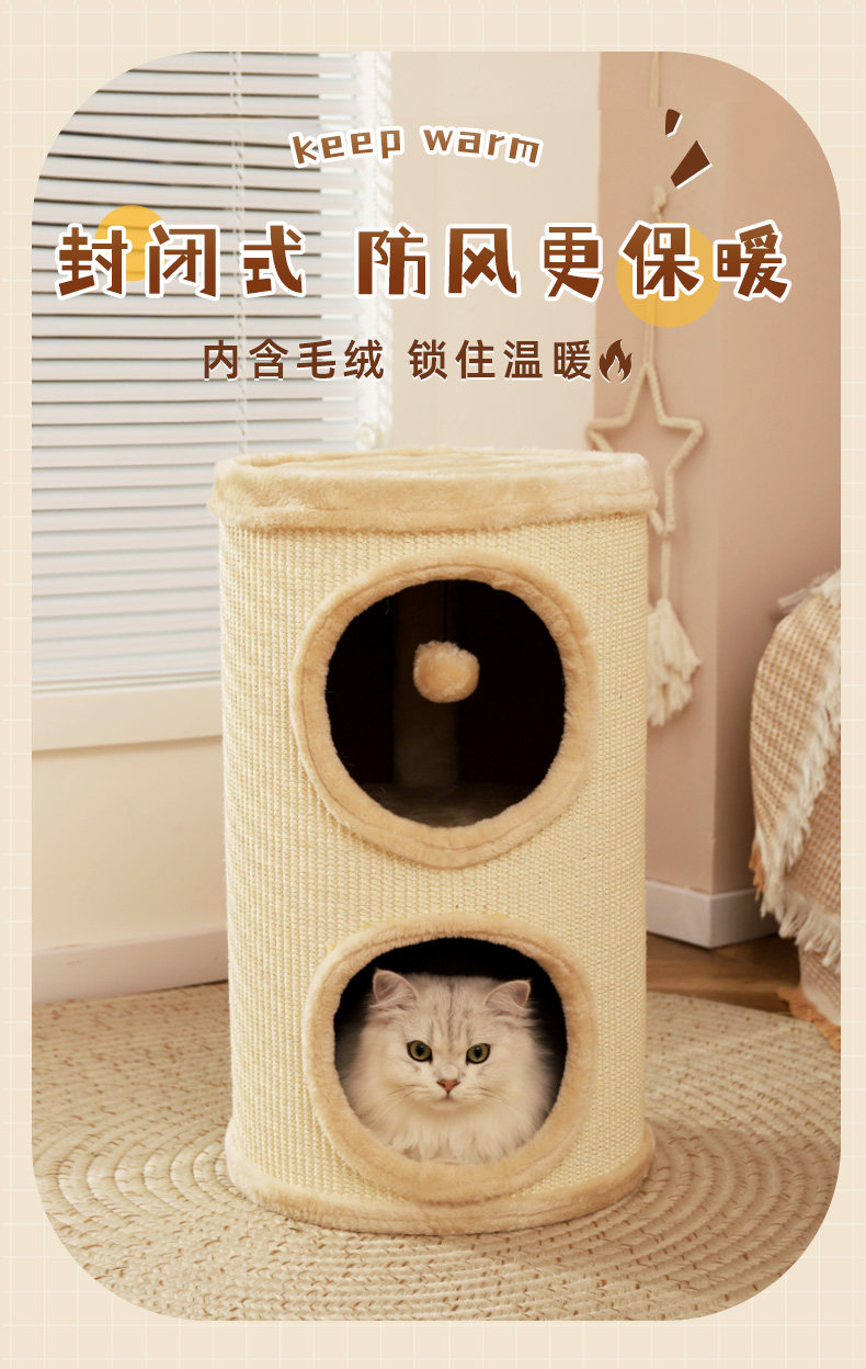 Marco de escalada para gatos, nido para gatos, árbol para gatos, doble capa, casa para gatos cerrada, tabla de agarre para gatos de sisal, uso universal para gatos en todas las estaciones