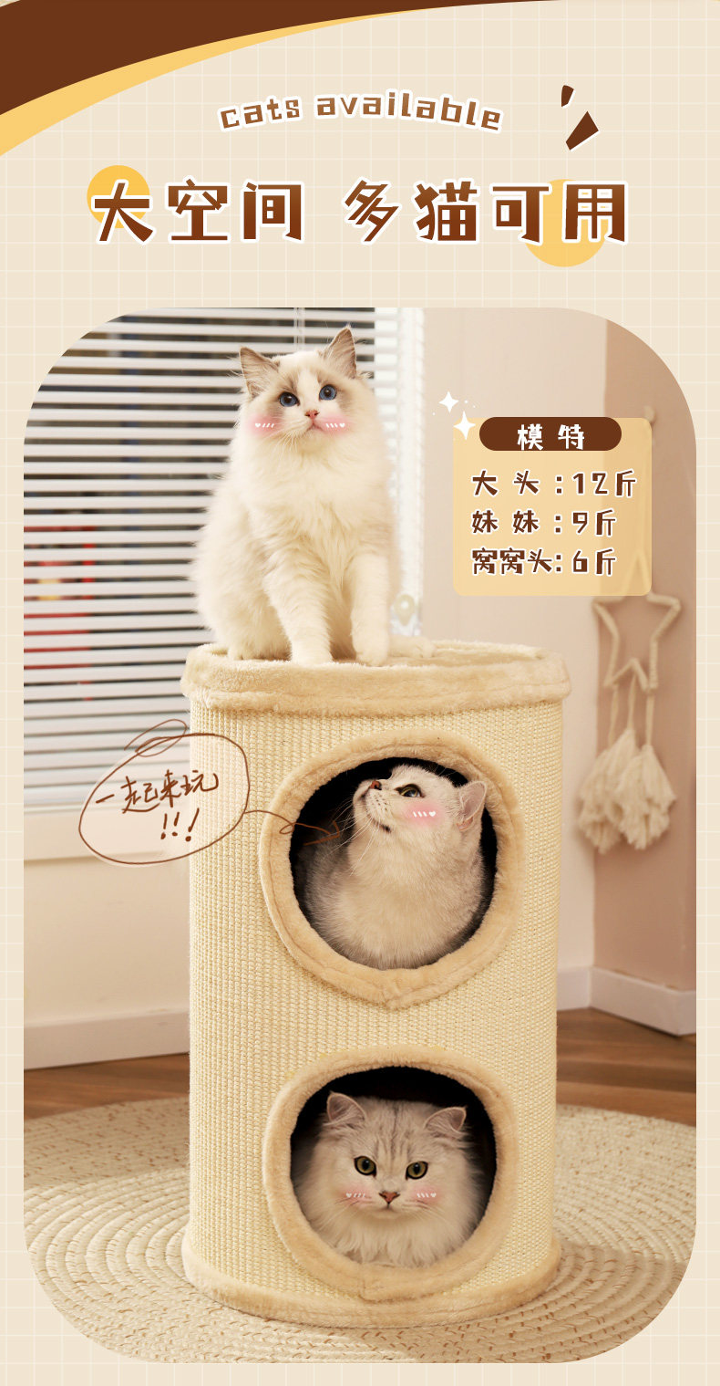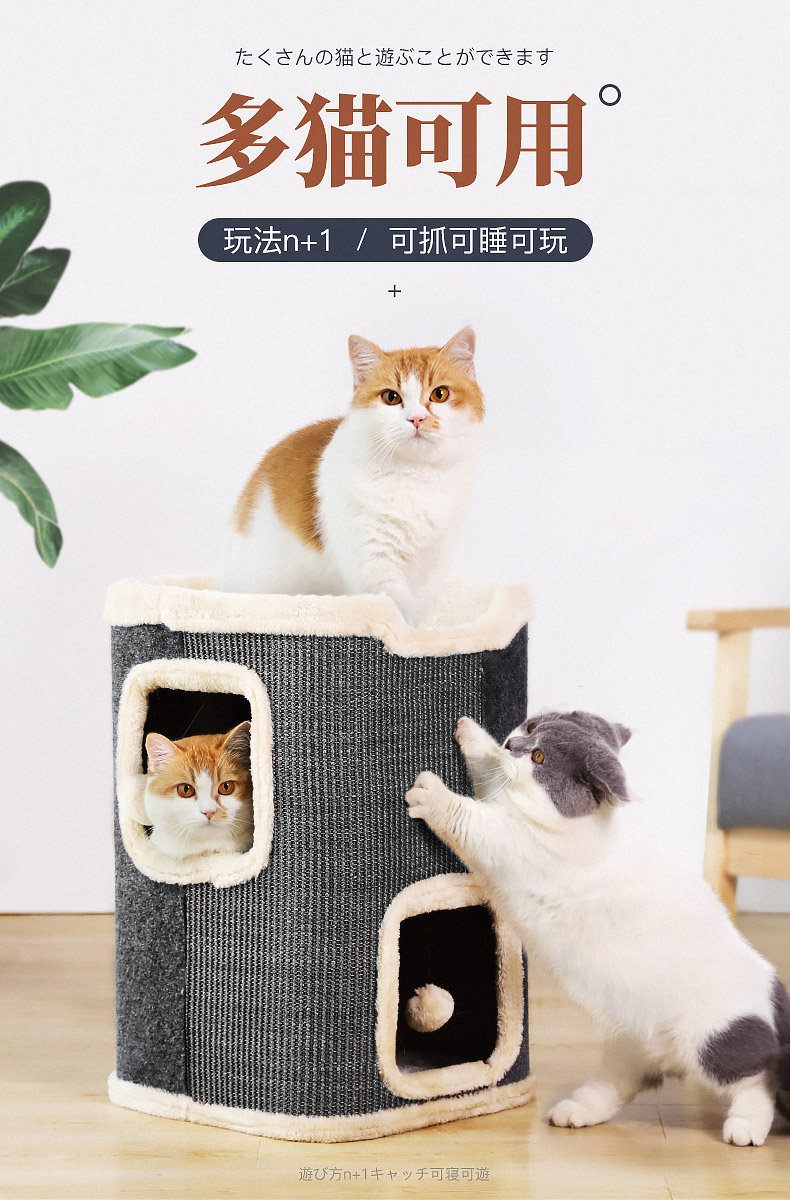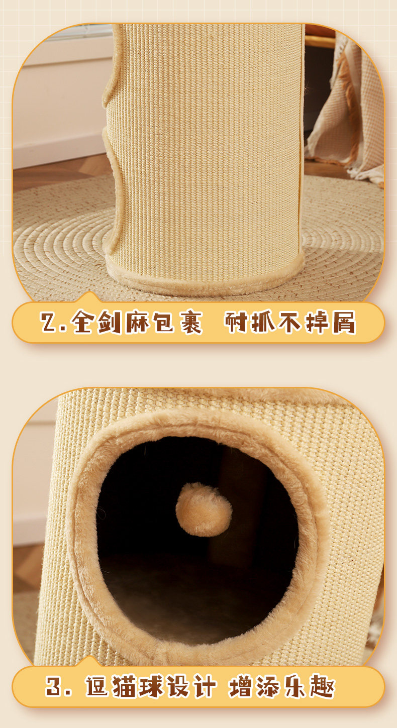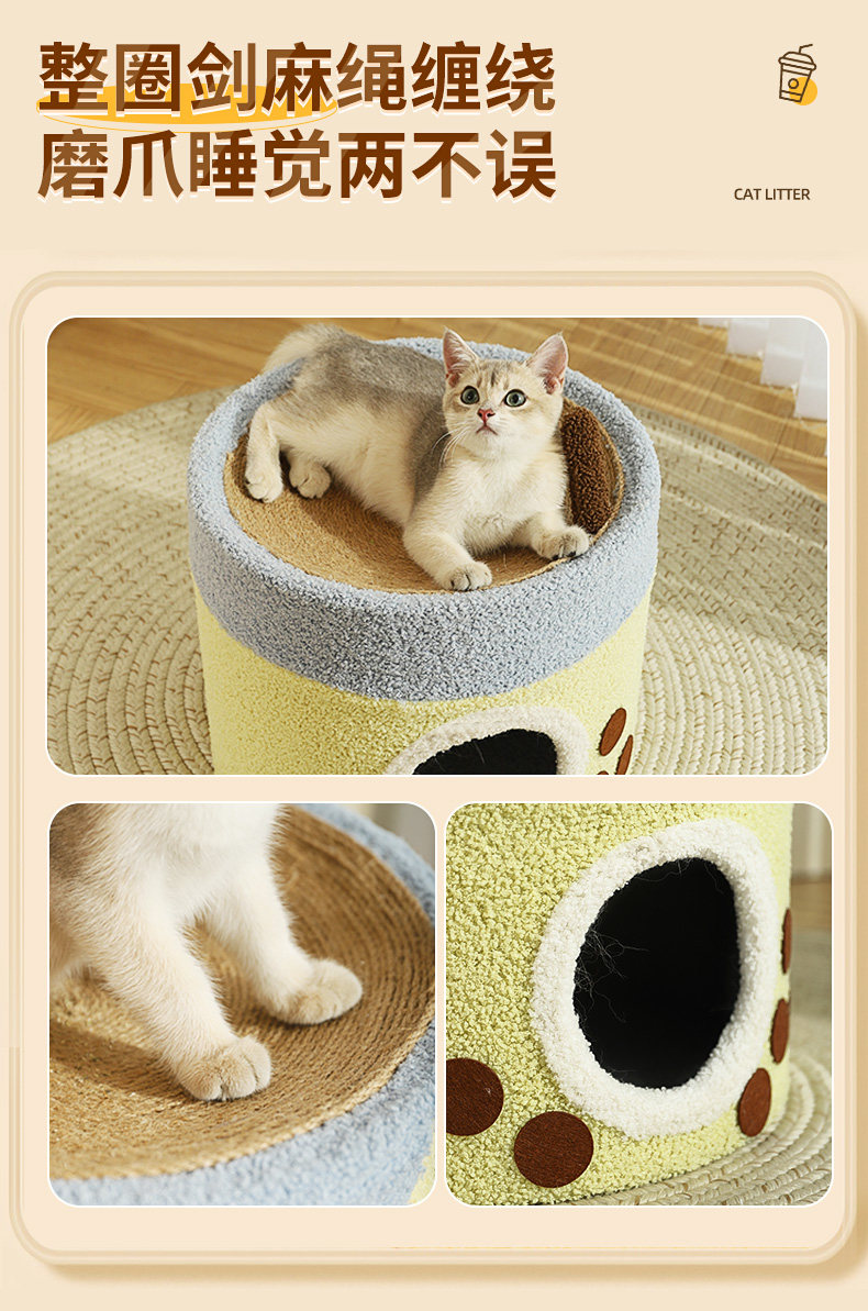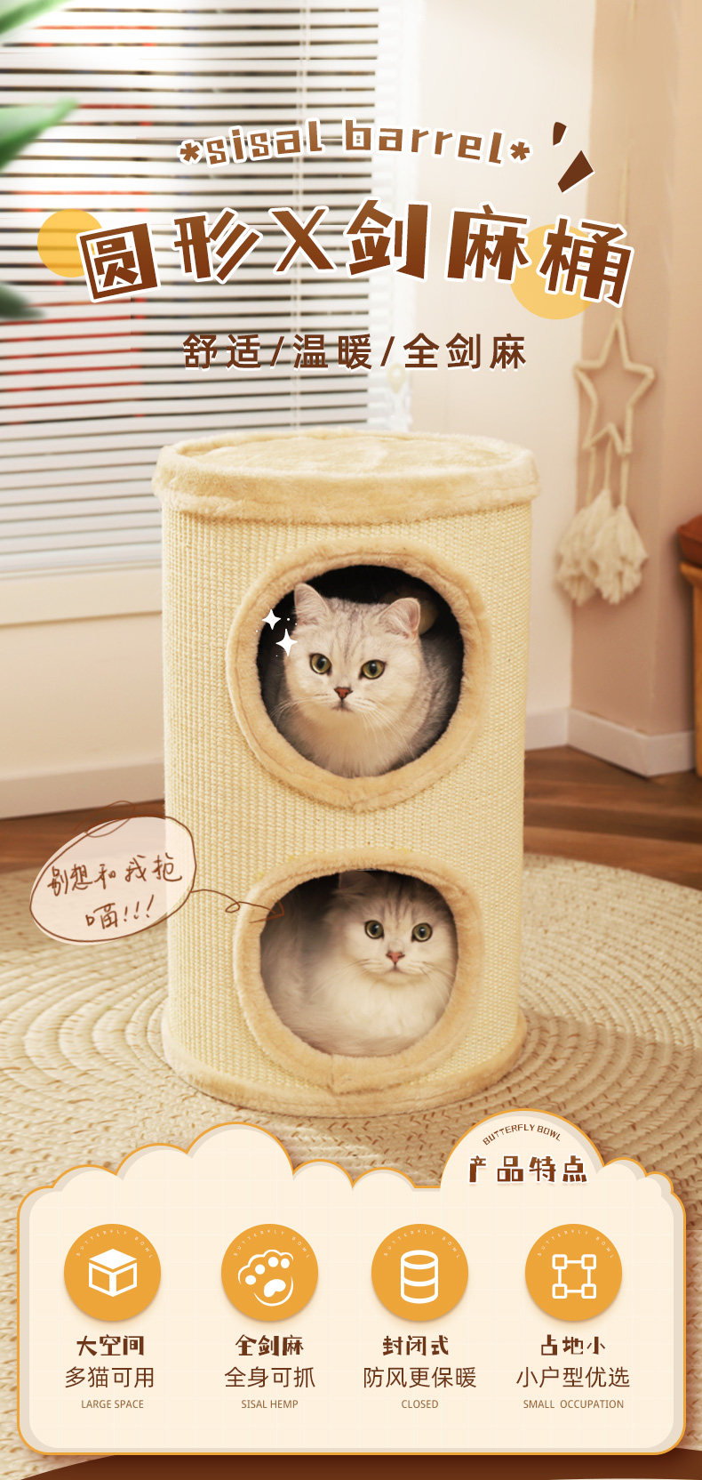 Marco de escalada para gatos, nido para gatos, árbol para gatos, doble capa, casa para gatos cerrada, tabla de agarre para gatos de sisal, uso universal para gatos en todas las estaciones
