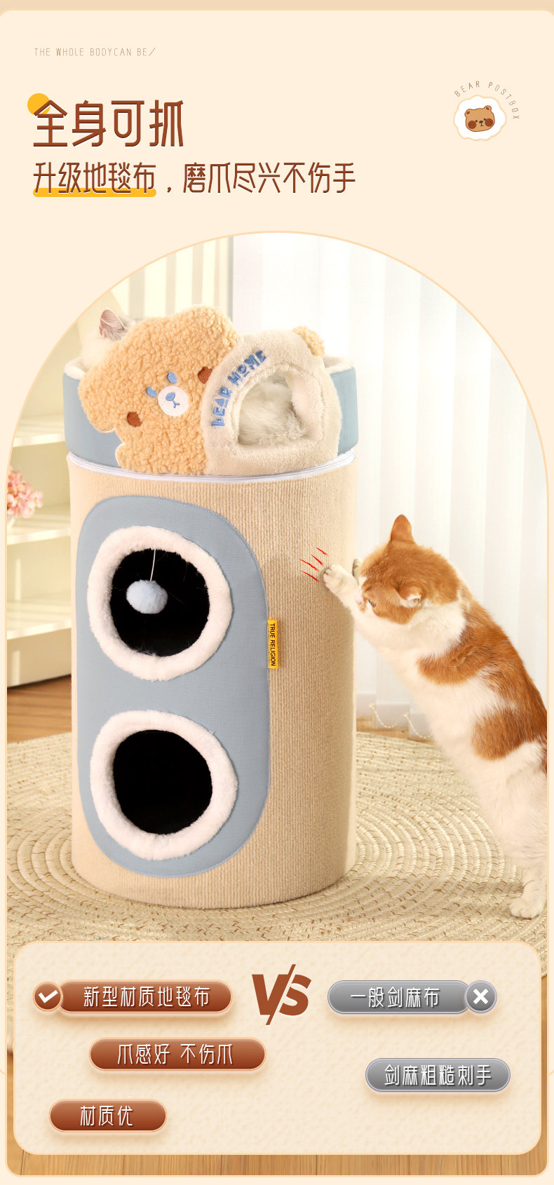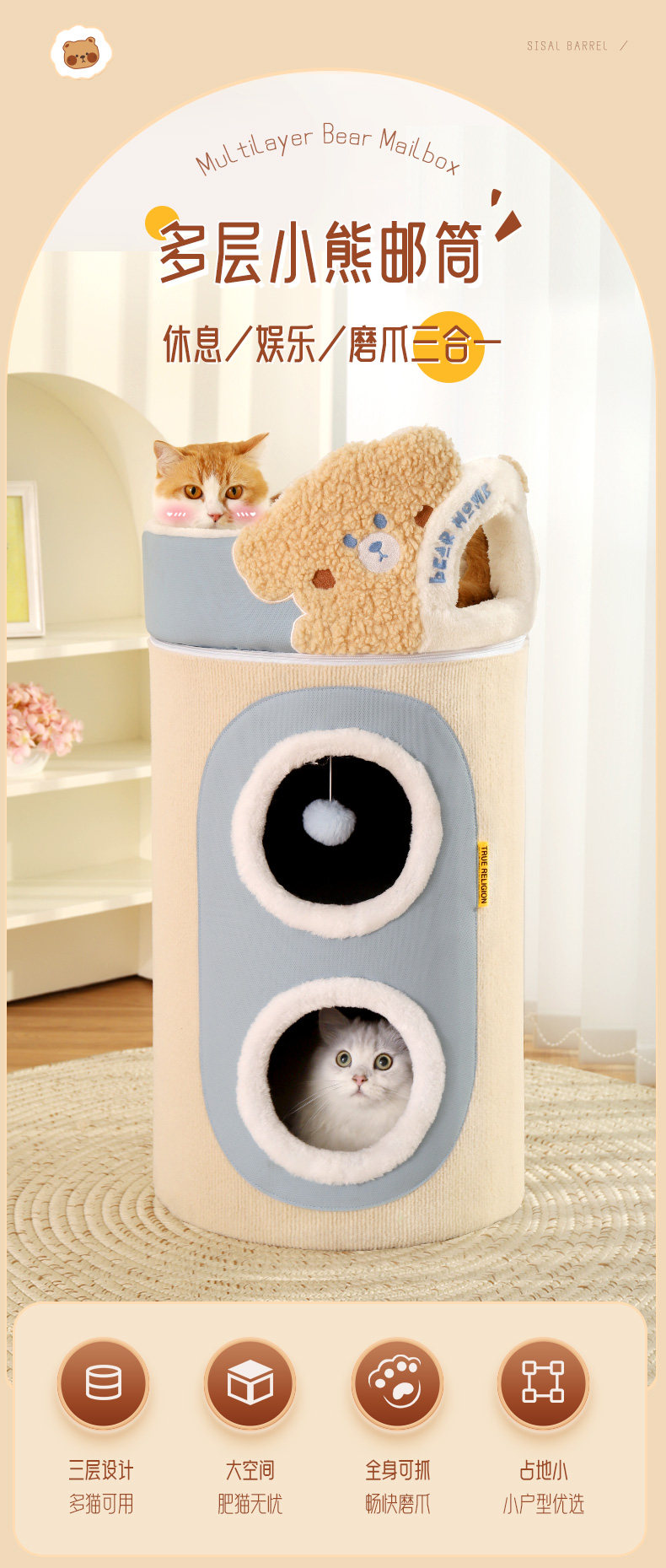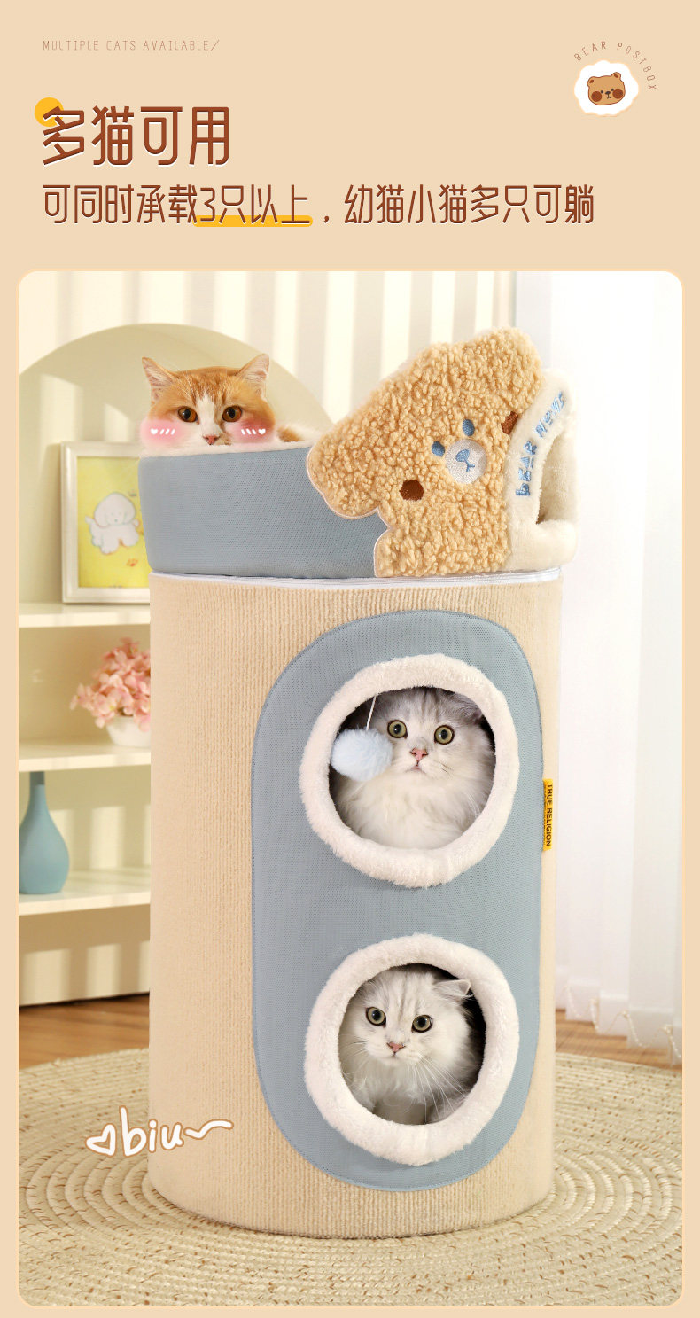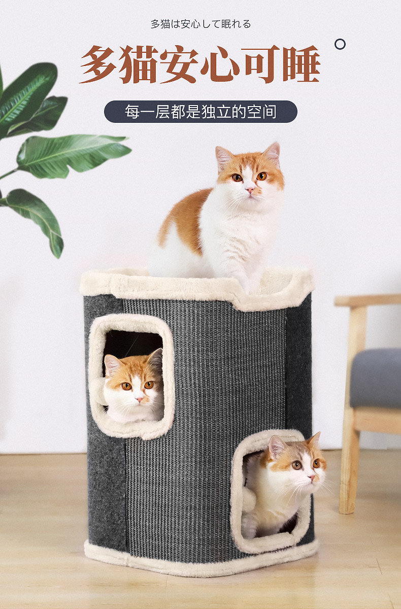 Marco de escalada para gatos, nido para gatos, árbol para gatos, doble capa, casa para gatos cerrada, tabla de agarre para gatos de sisal, uso universal para gatos en todas las estaciones