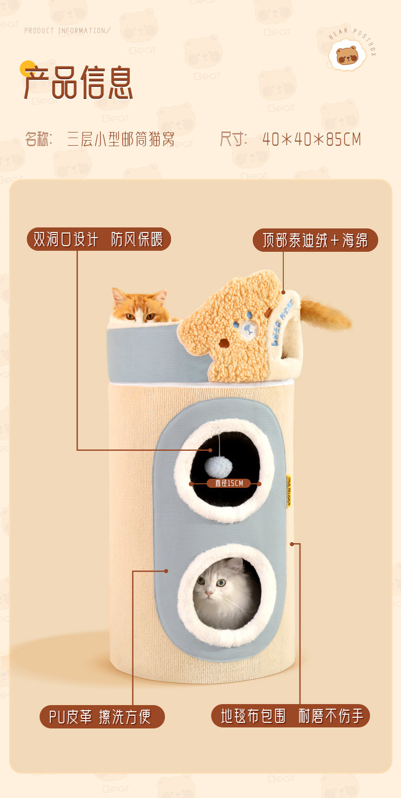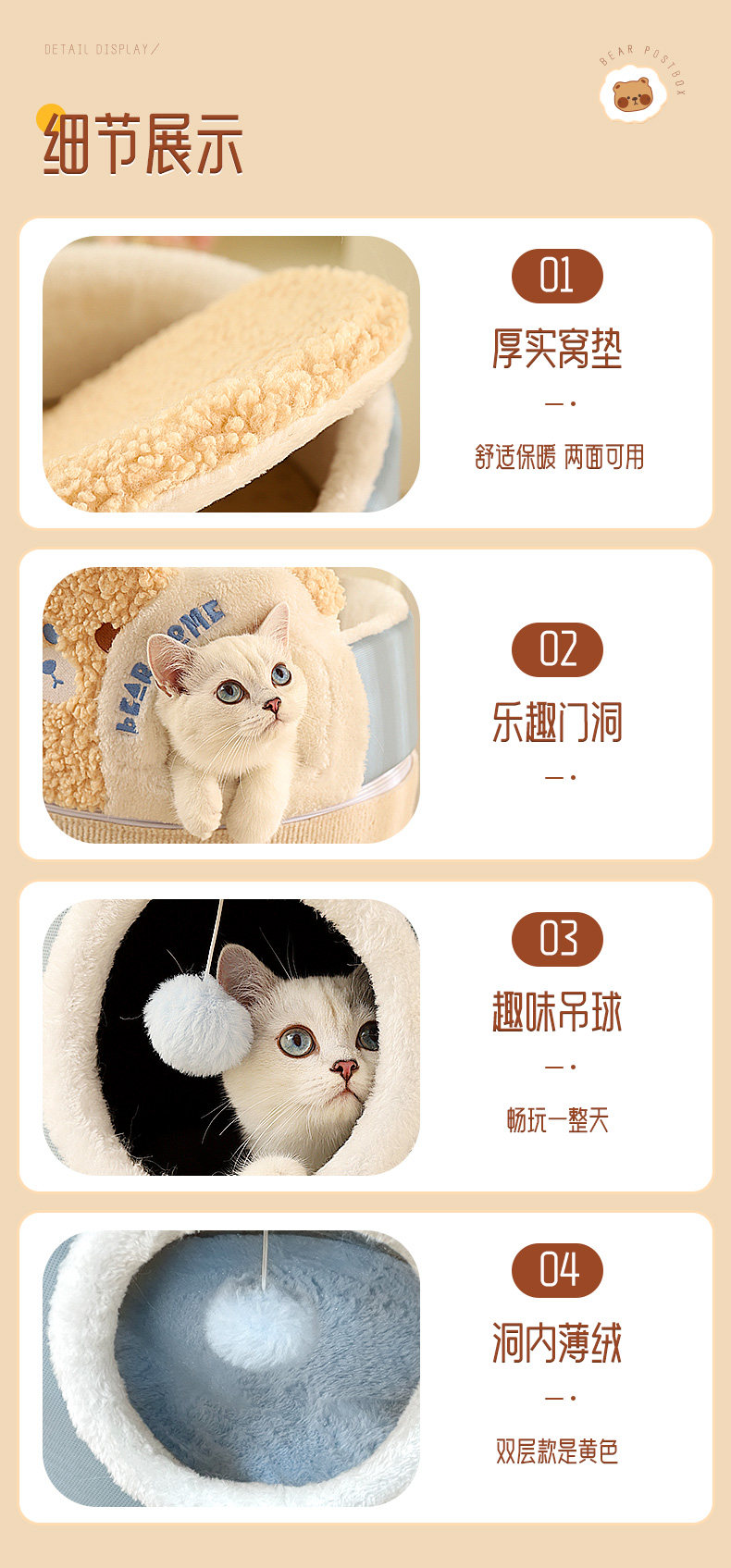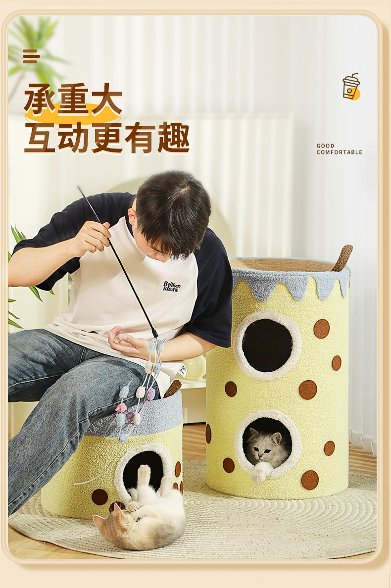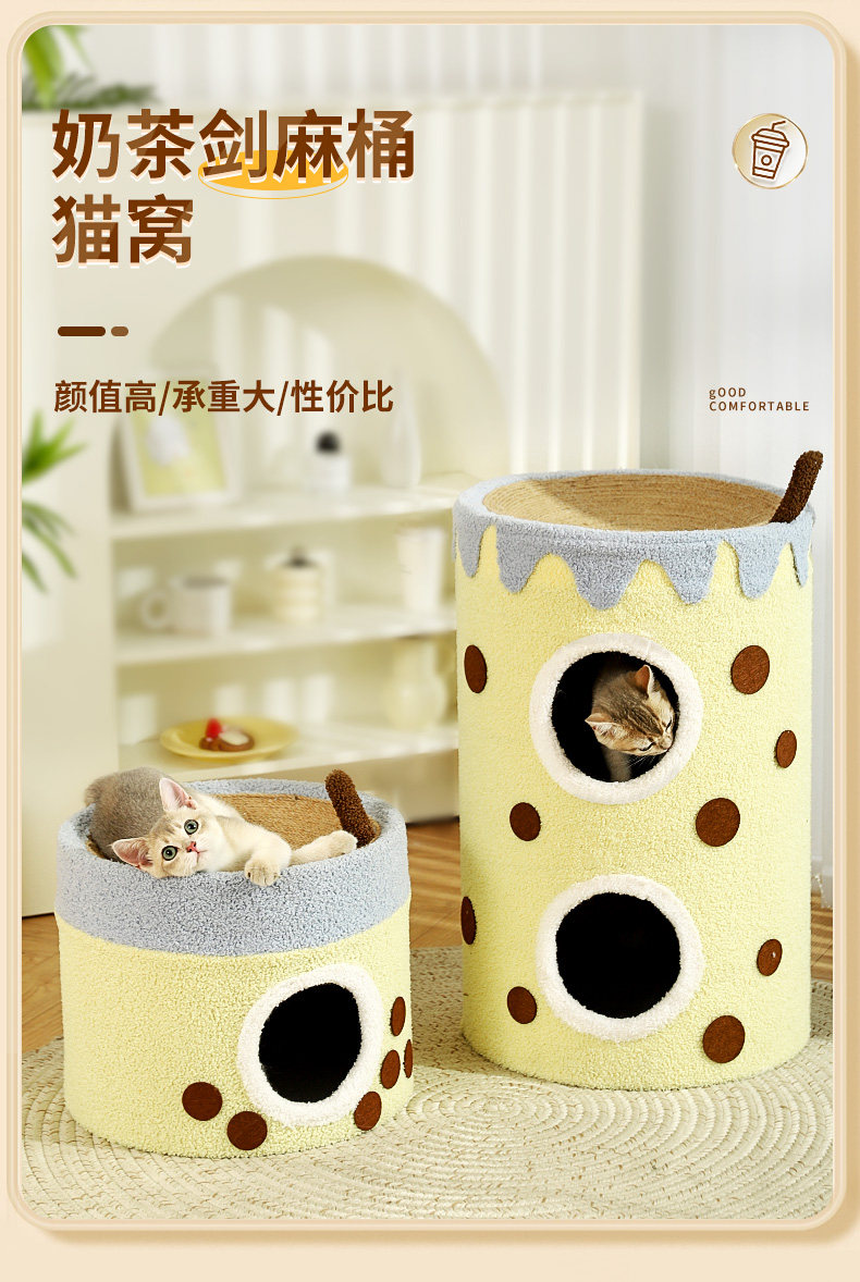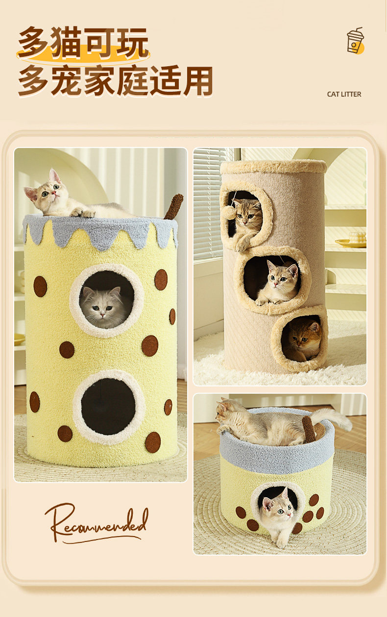 Marco de escalada para gatos, nido para gatos, árbol para gatos, doble capa, casa para gatos cerrada, tabla de agarre para gatos de sisal, uso universal para gatos en todas las estaciones