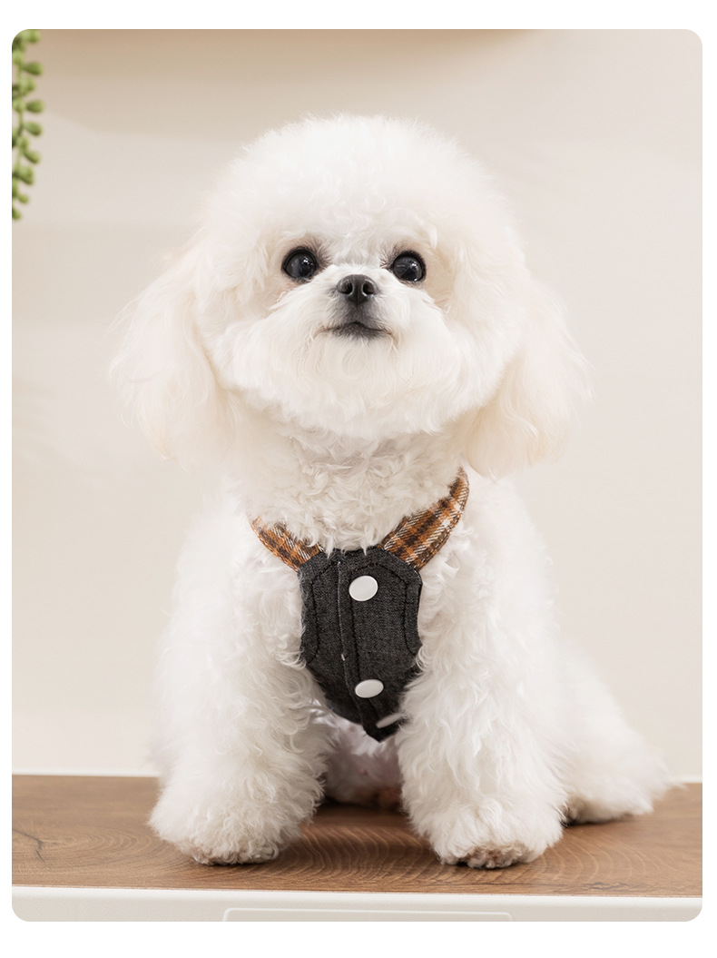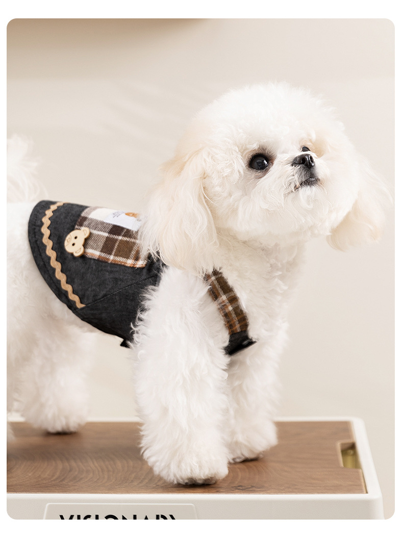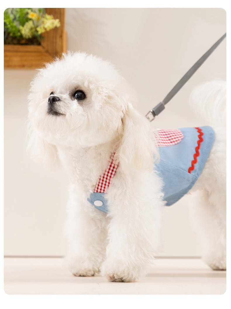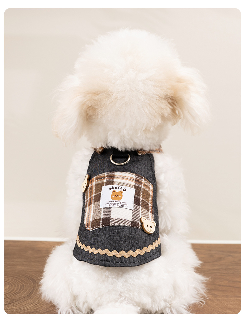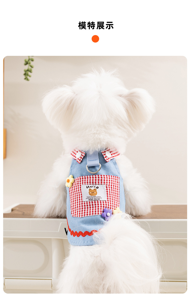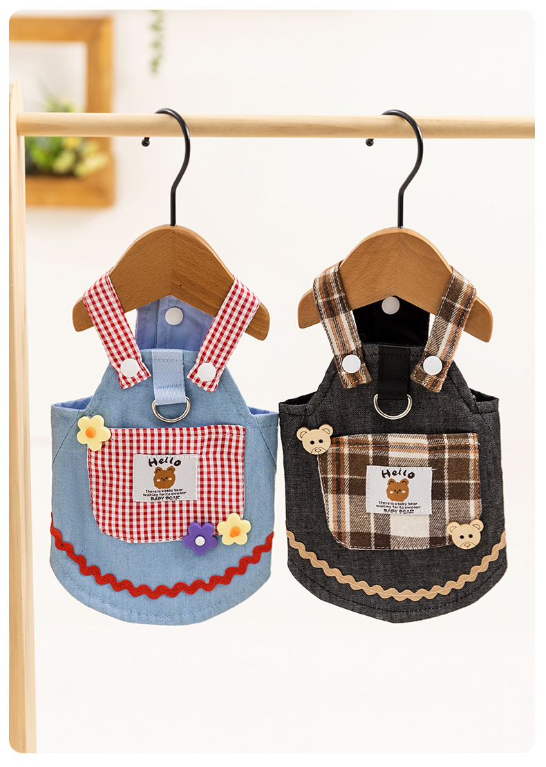 Nuevo perro primavera y verano de moda oso cuadrado bolsillo denim cinturón vestido gato vestido mascota Teddy ropa