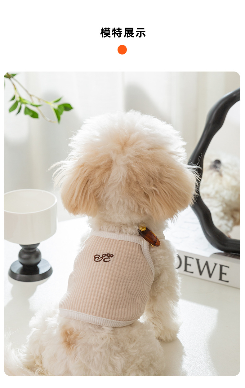 Primavera y verano perro estilo coreano fresco simple horquilla bordada pequeña Correa gato dos patas mascotas ropa delgada para perros