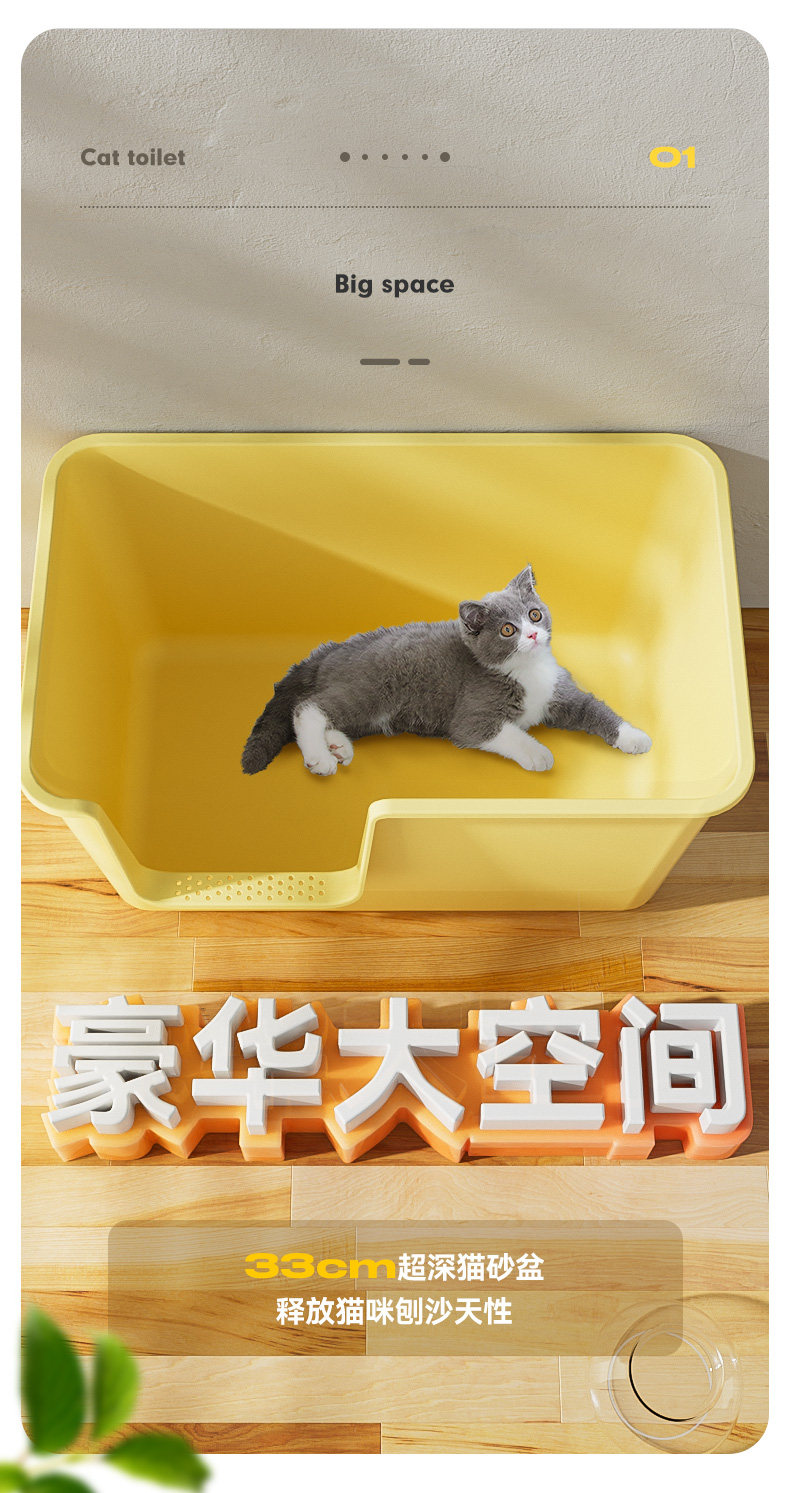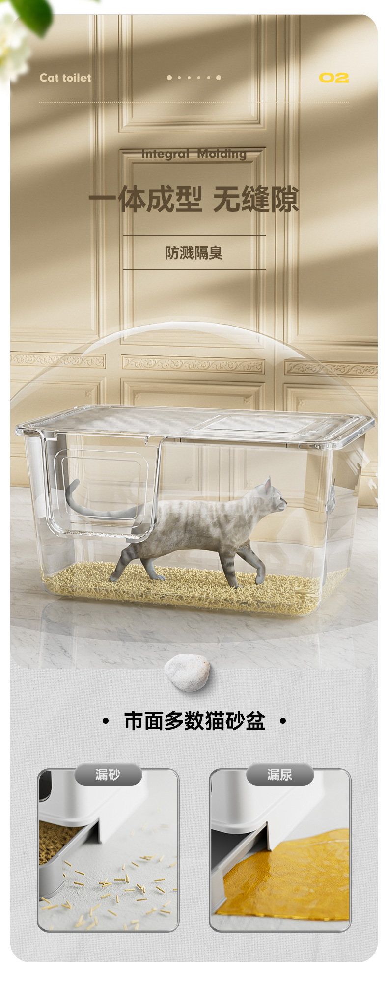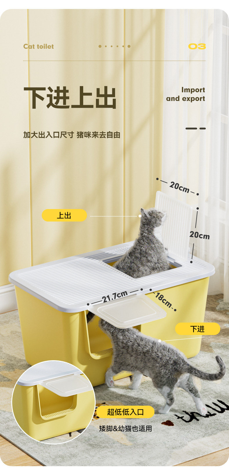 Caja de arena para gatos de gran tamaño completo semi-cerrado extra grande inodoro abierto integrado caja de arena para gatitos a prueba de salpicaduras