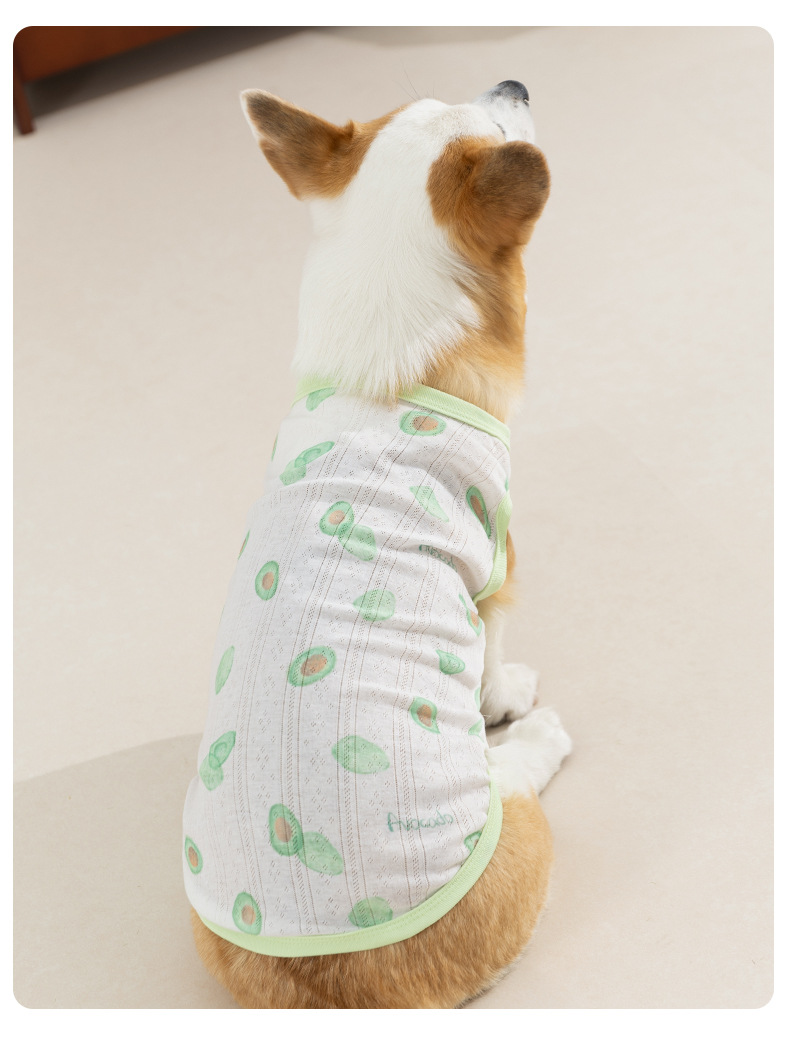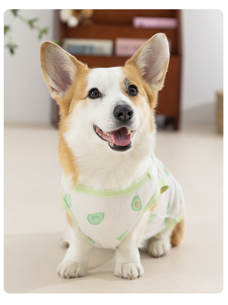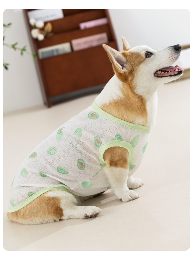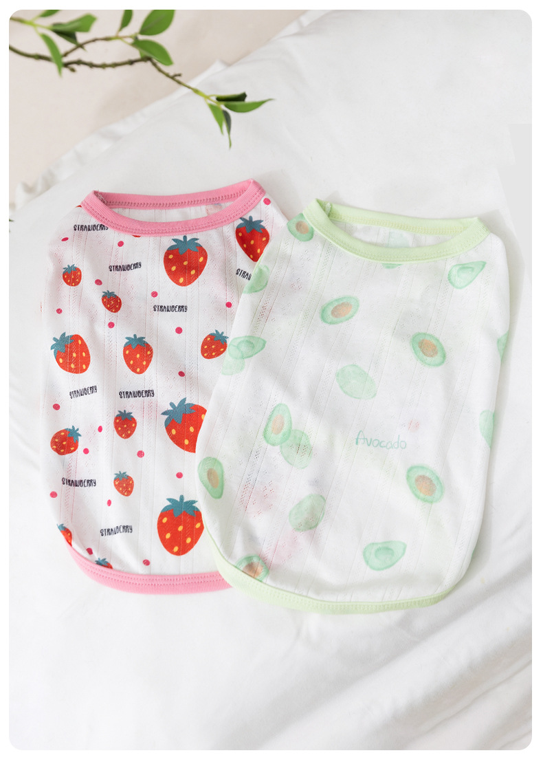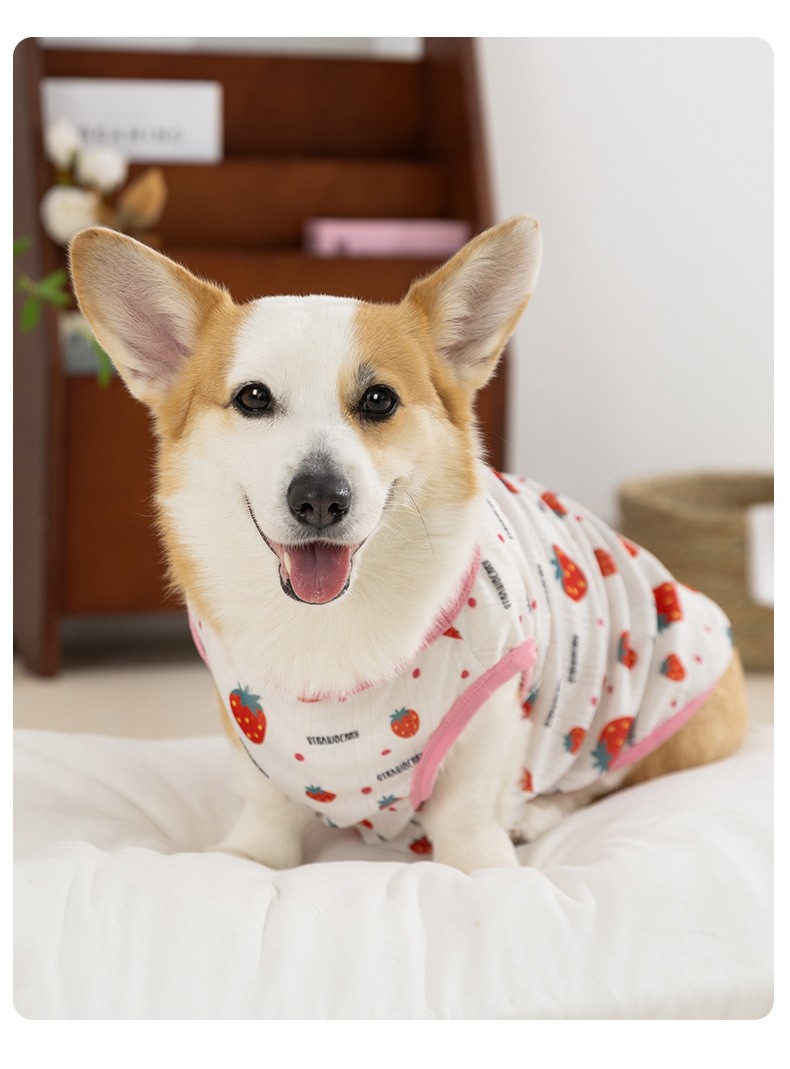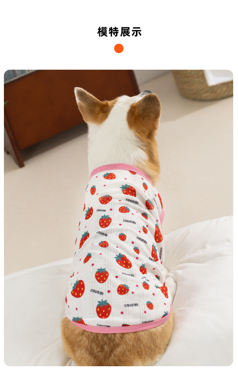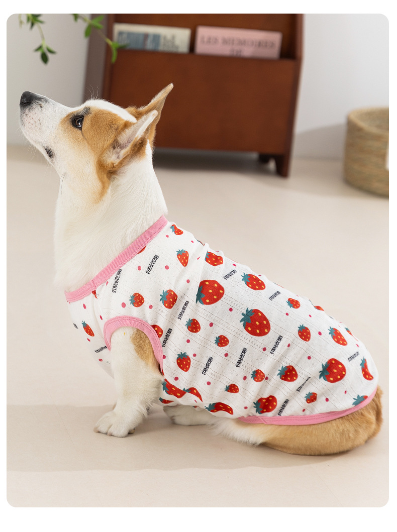 Estilo de primavera y verano perro fresa fruta Corgi chaleco pequeño perro salchicha de dos patas ropa delgada para perros