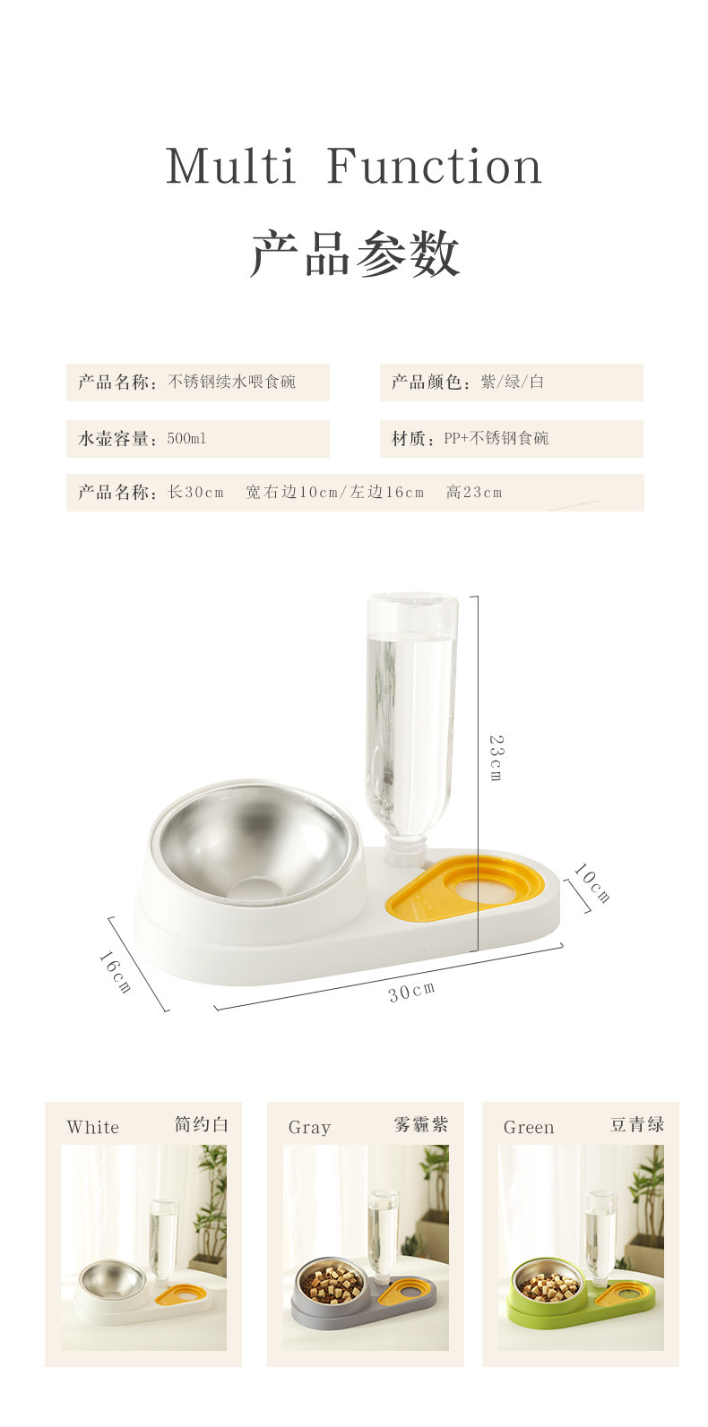 Gato tazón de alimentación de agua de acero inoxidable muñeca de tela gato automático no húmedo boca beber hervidor de alimentos para mascotas antidetonantes tazón de arroz