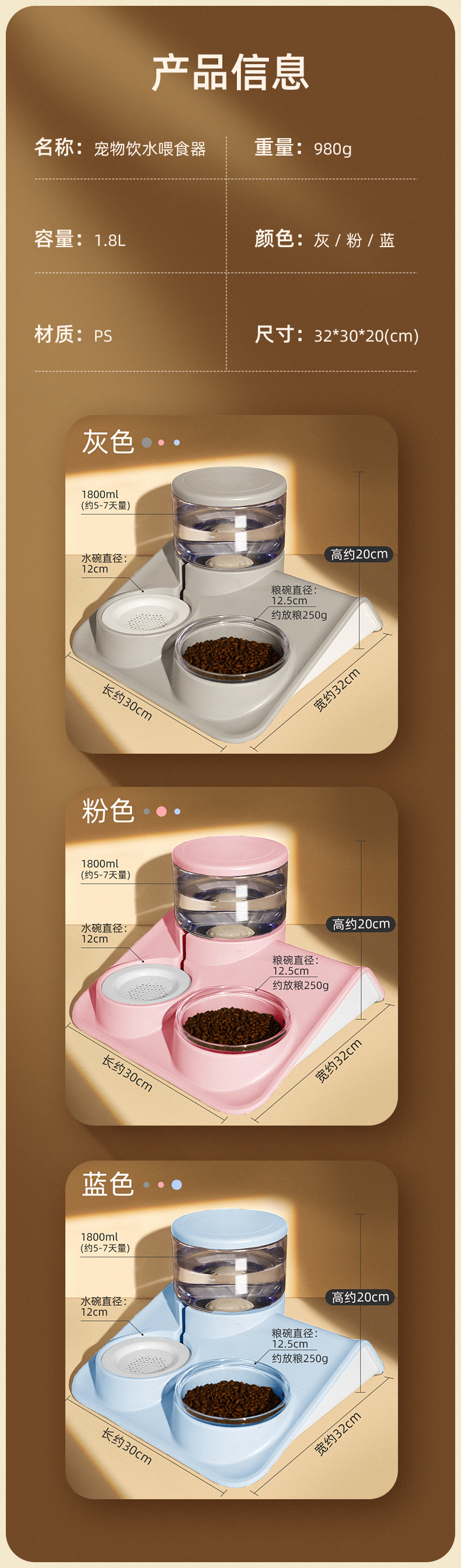 | Color | Almacenamiento de agua de gran capacidad de 1.8L; Universal para perros y gatos |