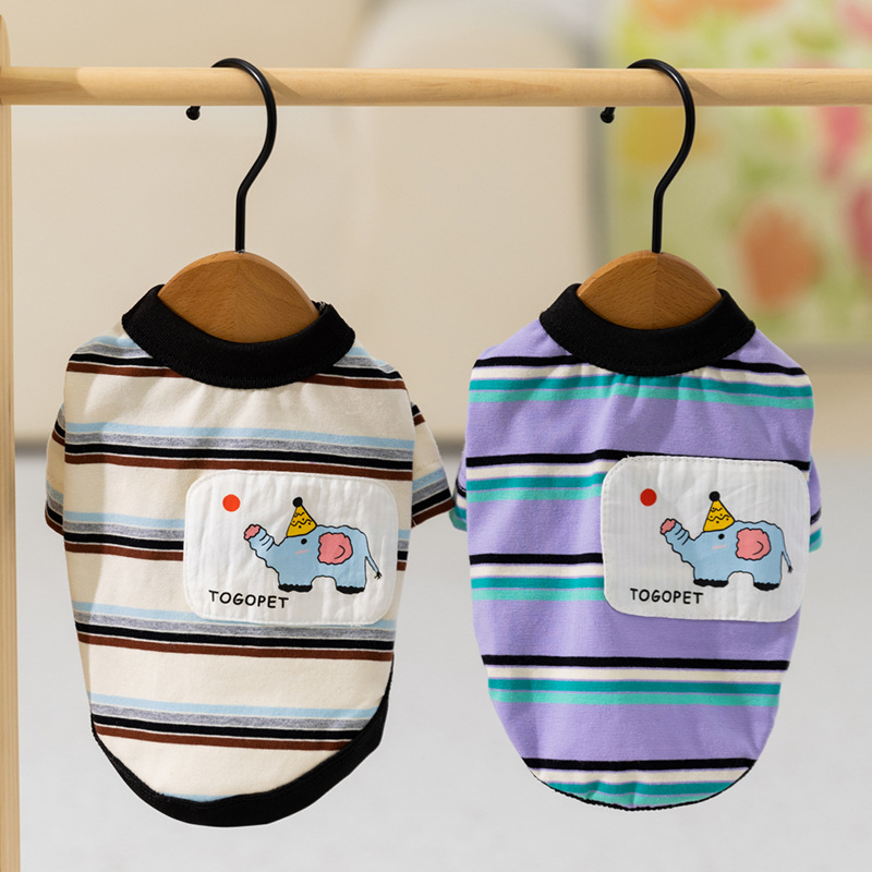 Perro primavera y verano dibujos animados a rayas elefante chaleco de dos patas felino camiseta Teddy Bear adorable ropa de perro
