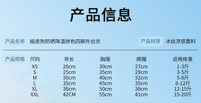 Perro transfronterizo de verano ropa de cuatro patas de protección solar refrigeración de calor ropa de protección solar fría ropa de perros pequeños y medianos ropa de mascotas al aire libre