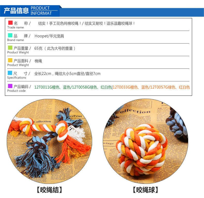 Perro de algodón cuerda de juguete mascota molar mordedura nudo cuerda ventilación juguete Huayuan suministros para mascotas en stock al por mayor