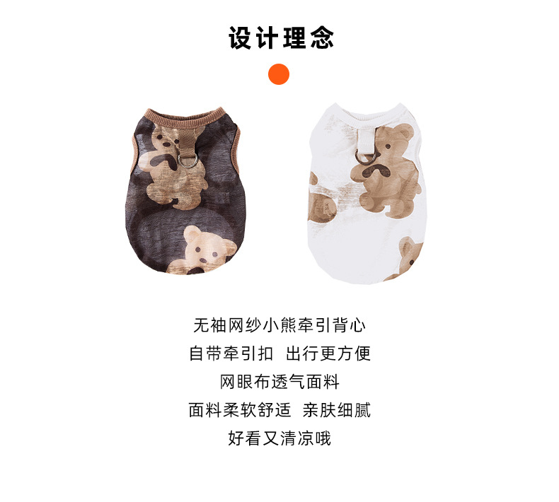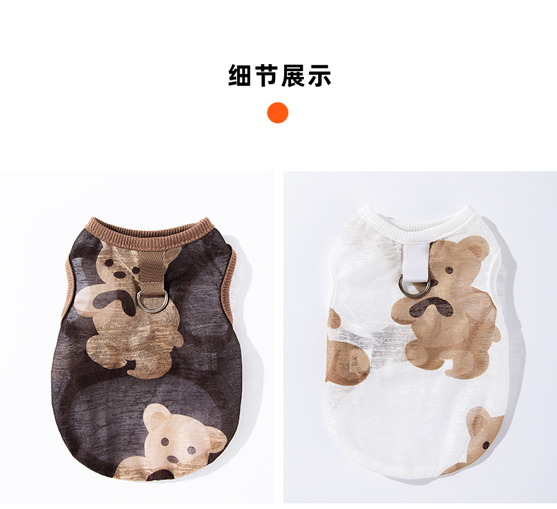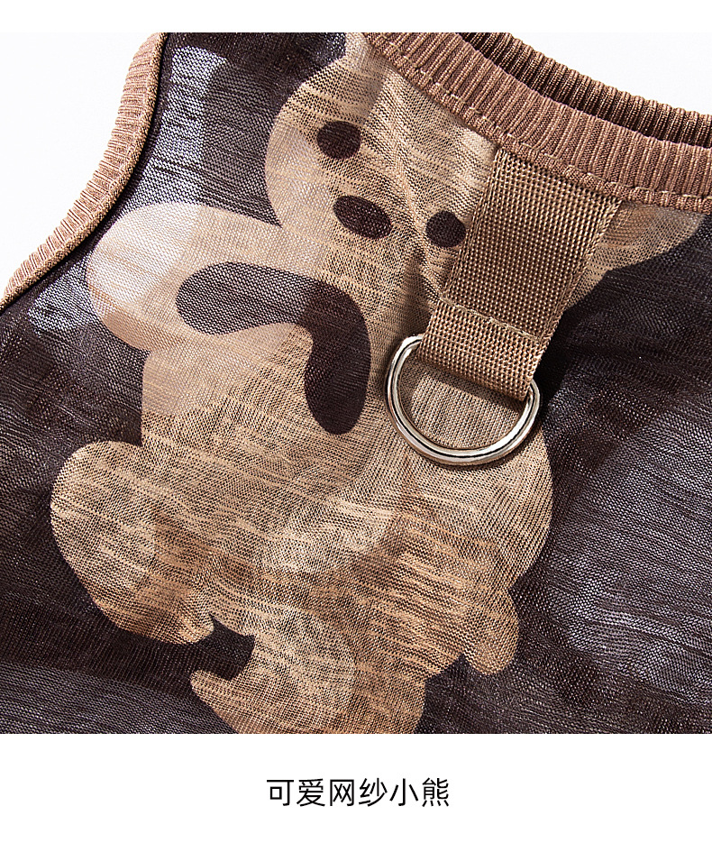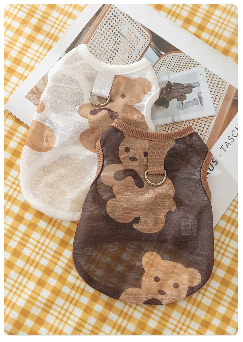 Estilo japonés y coreano perro mascota sin mangas malla oso chaleco de tracción gato transpirable delgado peluche ropa para perros