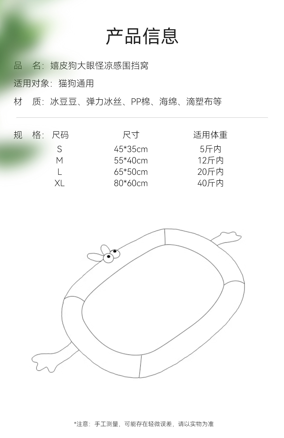Primavera y verano para perros, esteras frescas, ojos grandes, sensación fría, perros pequeños y medianos, frijol, frijol, gato, gato, mascota.