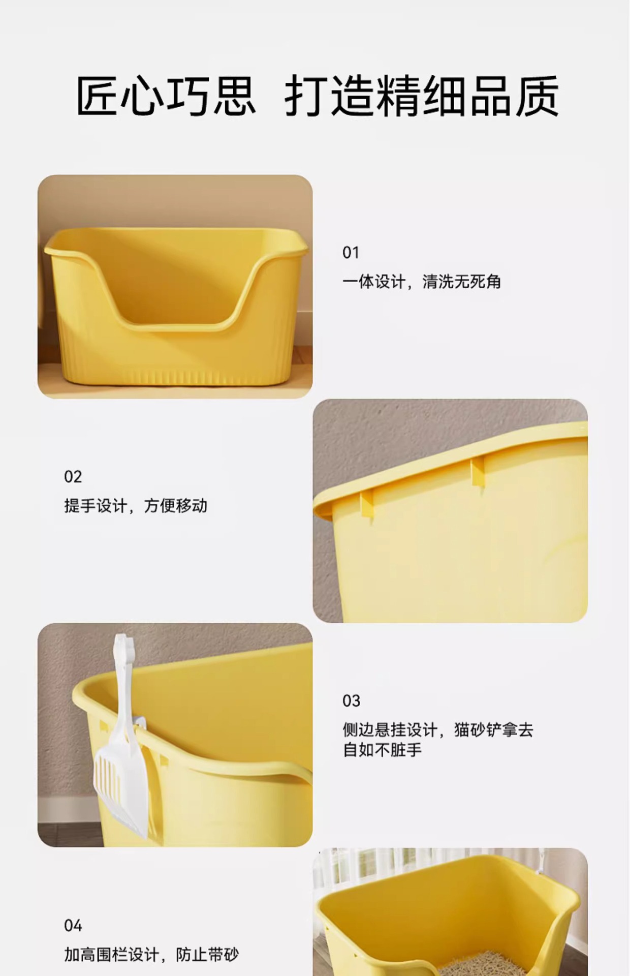 La caja de arena para gatos está completamente cerrada para evitar salpicaduras externas. La caja de arena para gatos Maine abierta gigante de gran tamaño semicerrada