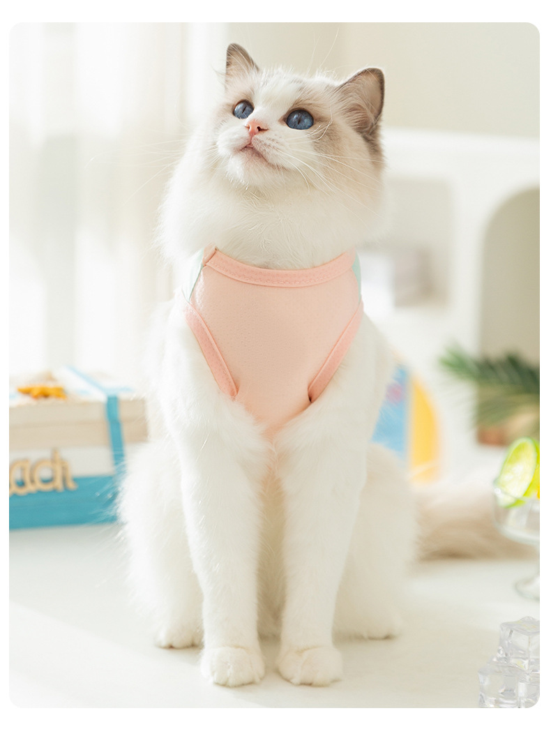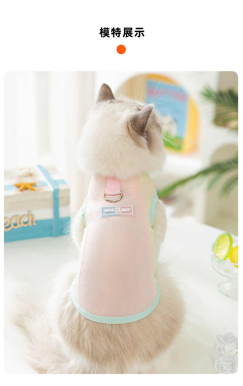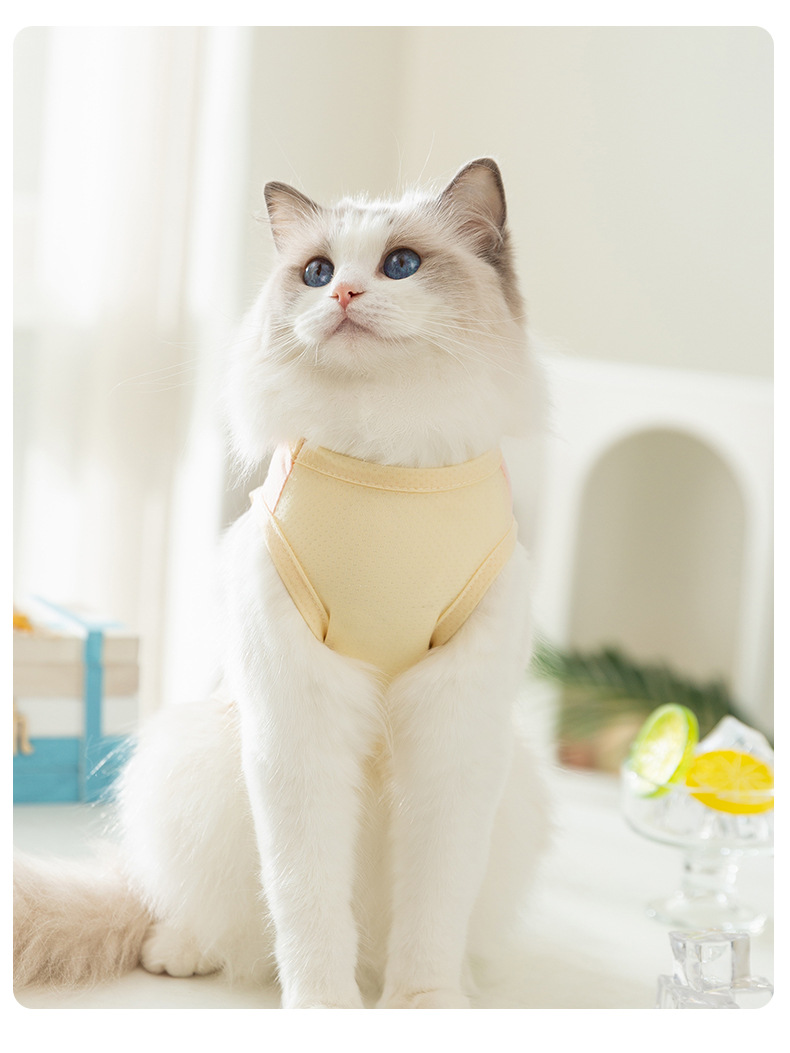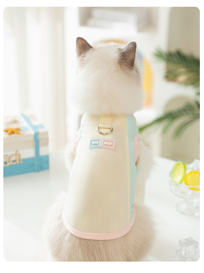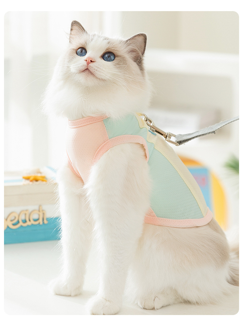 Cat primavera y verano macarons transpirables pequeña mariposa malla protector solar fresco gato mascota chaleco de tracción ropa para perros