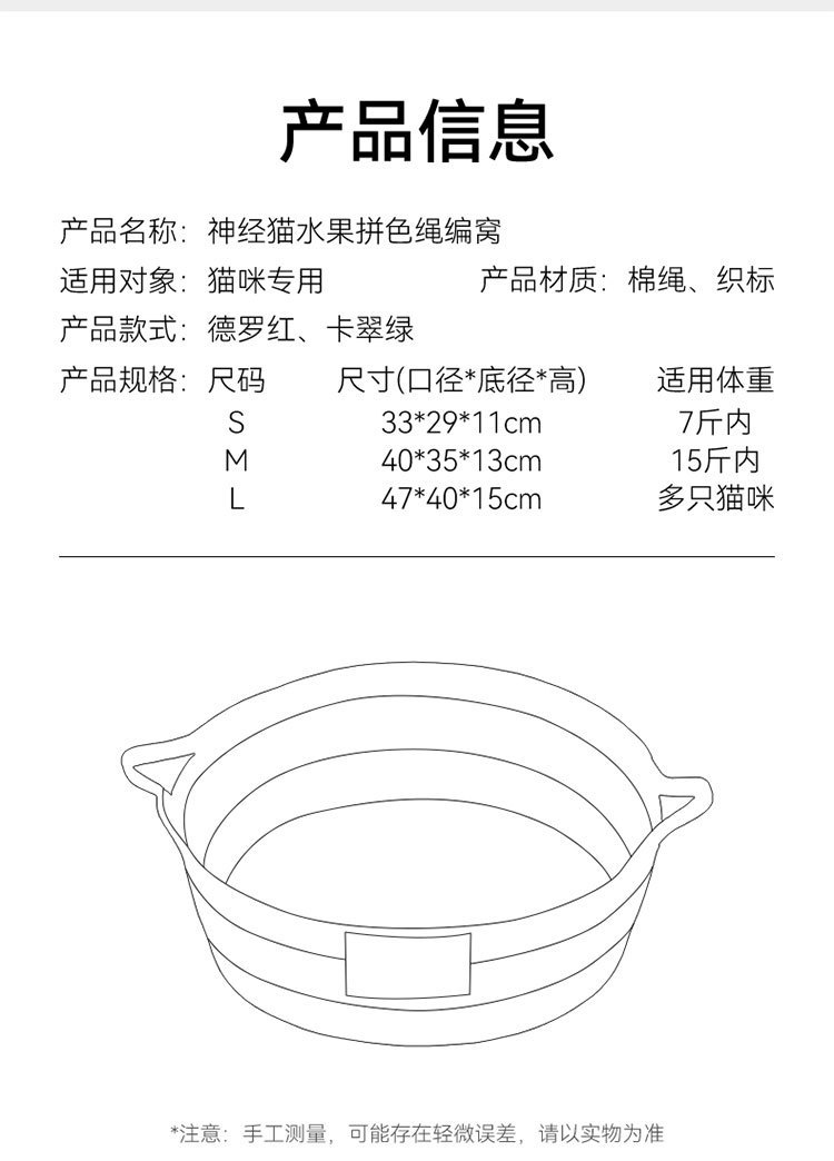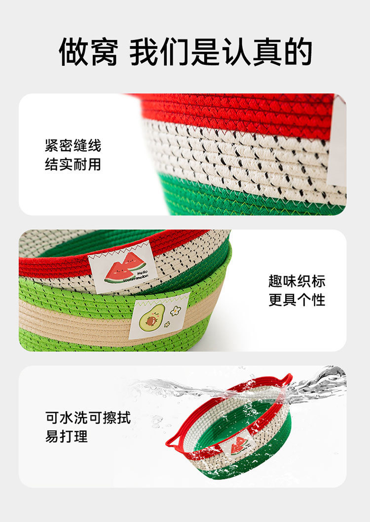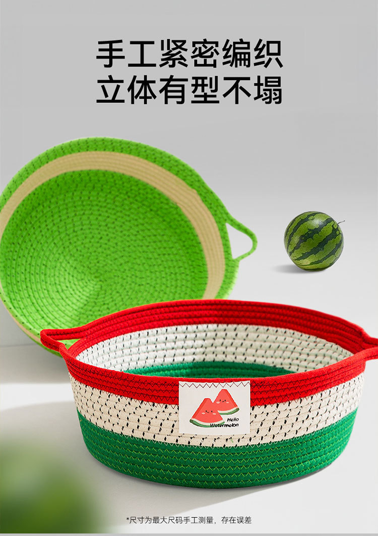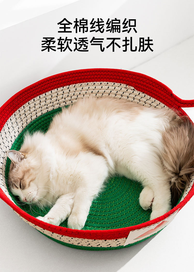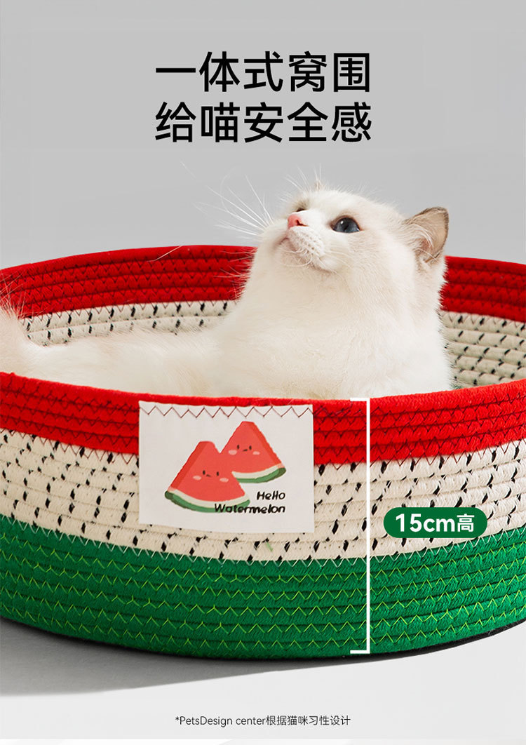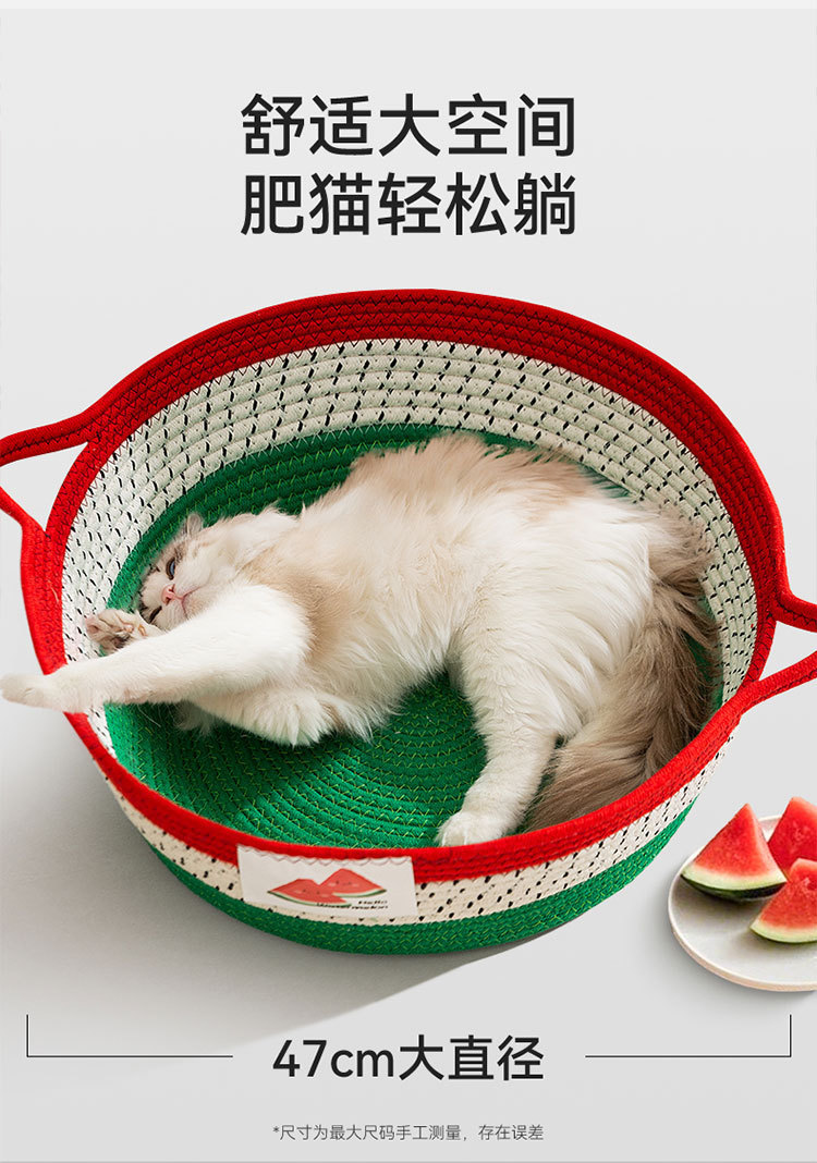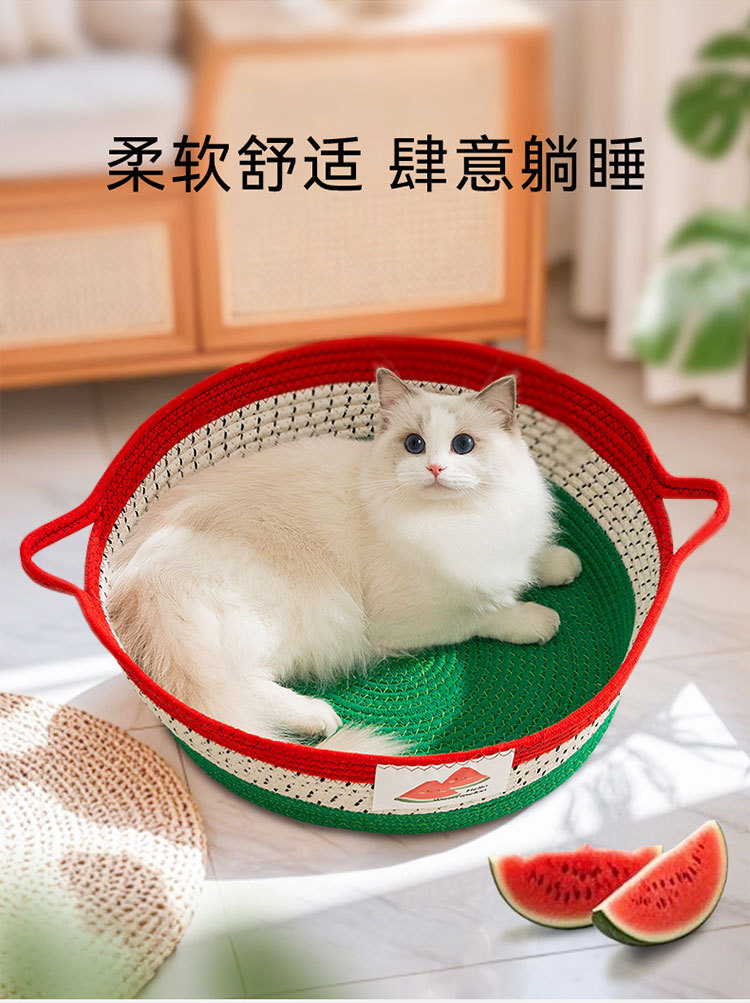 Primavera y verano sandía fruta ratán trenzado nido para gatos cuatro estaciones cuerda de algodón trenzada universal nido para gatos portátil nido para perros de peluche