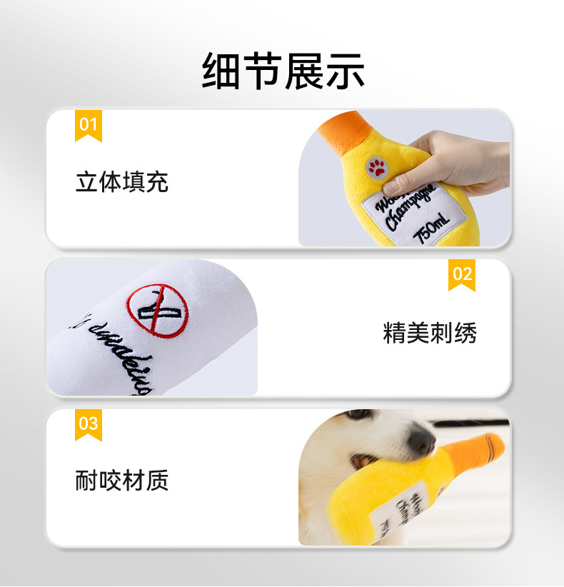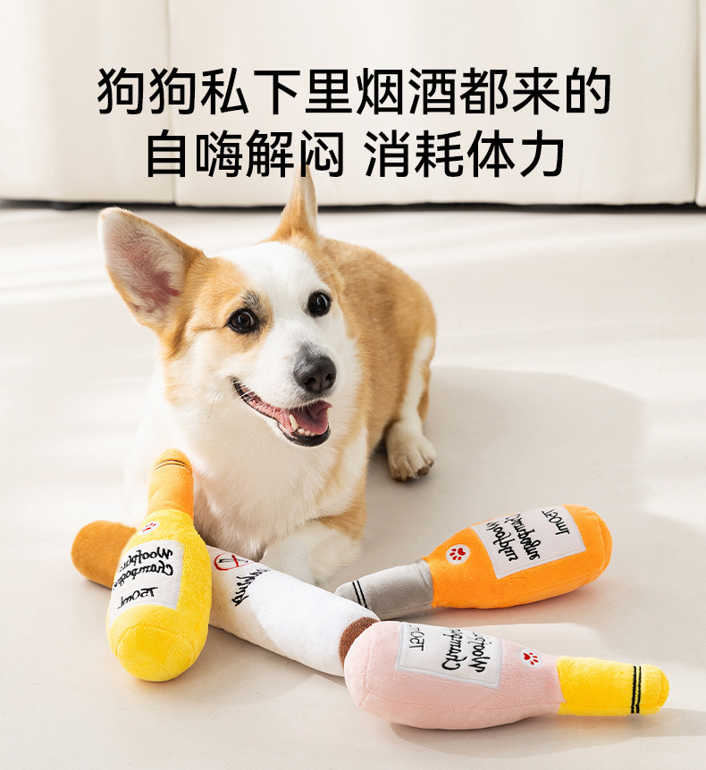 Juguetes de sonido de felpa de tabaco y alcohol molares para perros, botellas de vino para perros pequeños, juguetes para perros que muerden, juguetes para mascotas de acompañamiento interactivo