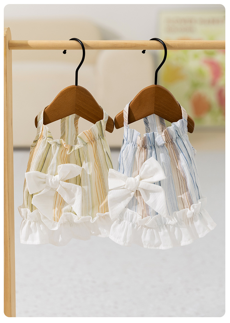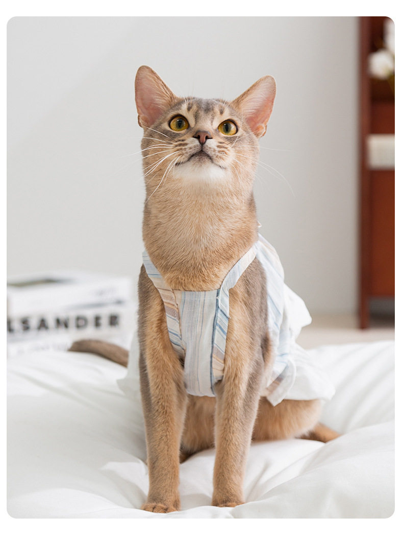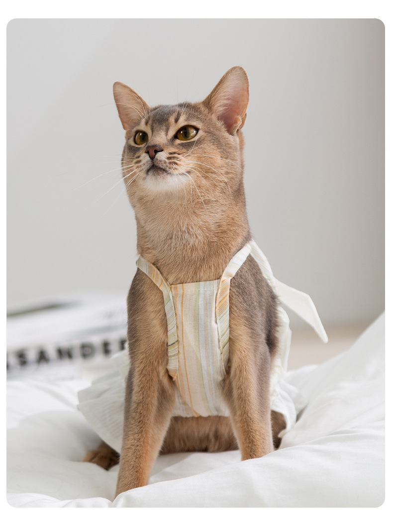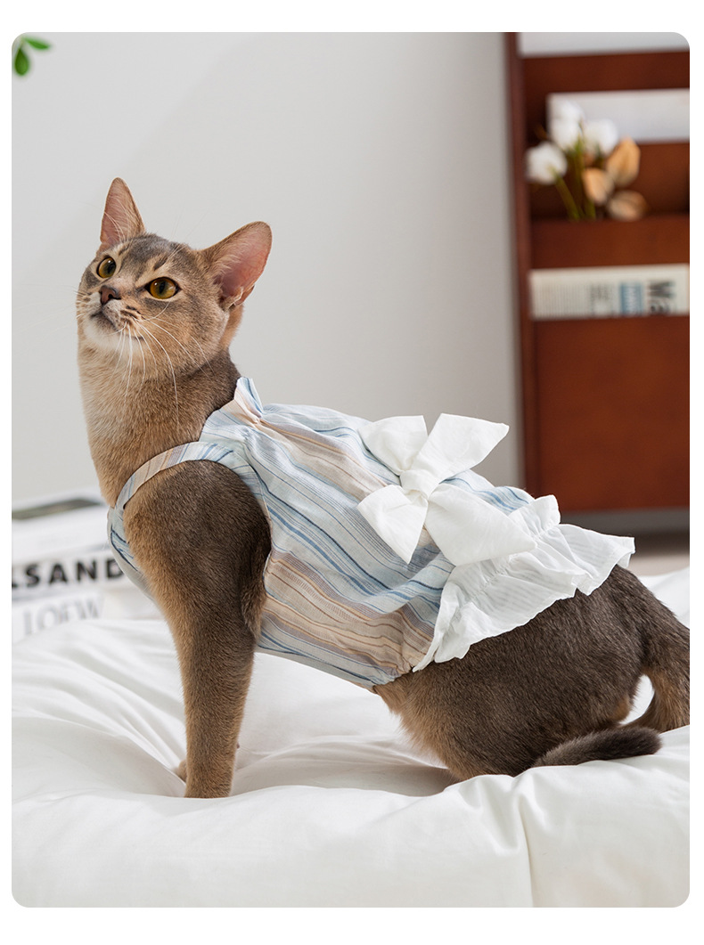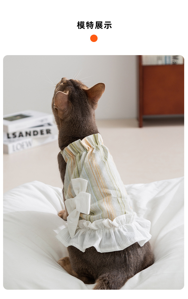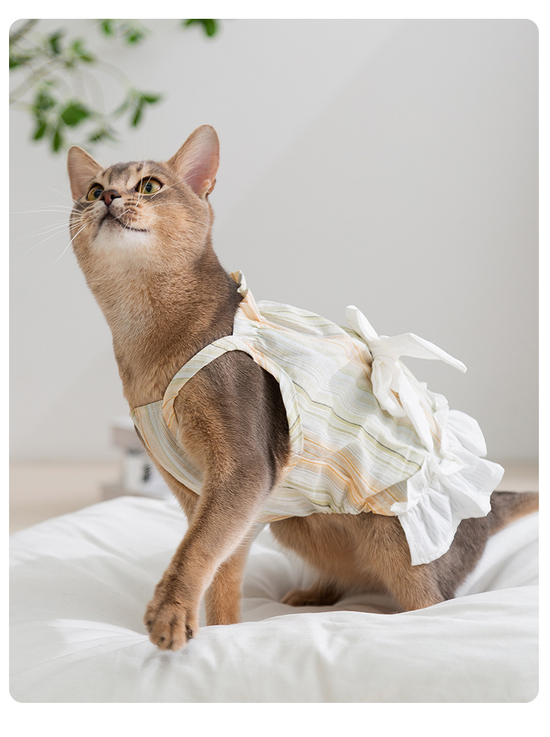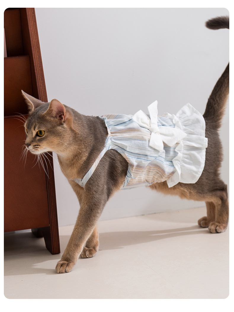 Gato primavera y verano rayas damas arco esbelta falda perro pequeño y mediano peluche falda perro mascota ropa de gato