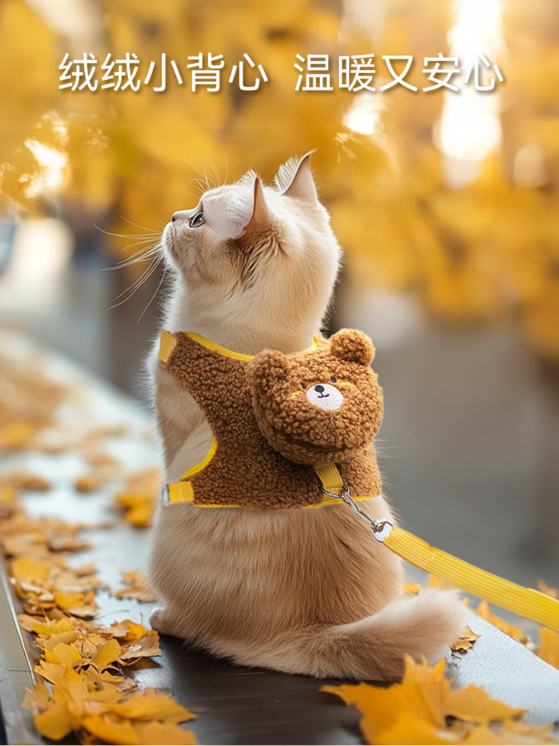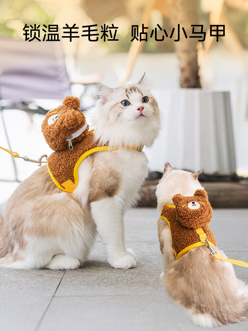Otoño y invierno gatos paseando cuerda de gato chaleco tipo perro dibujos animados animales lana cuerda de tracción cuerda de gato mascota